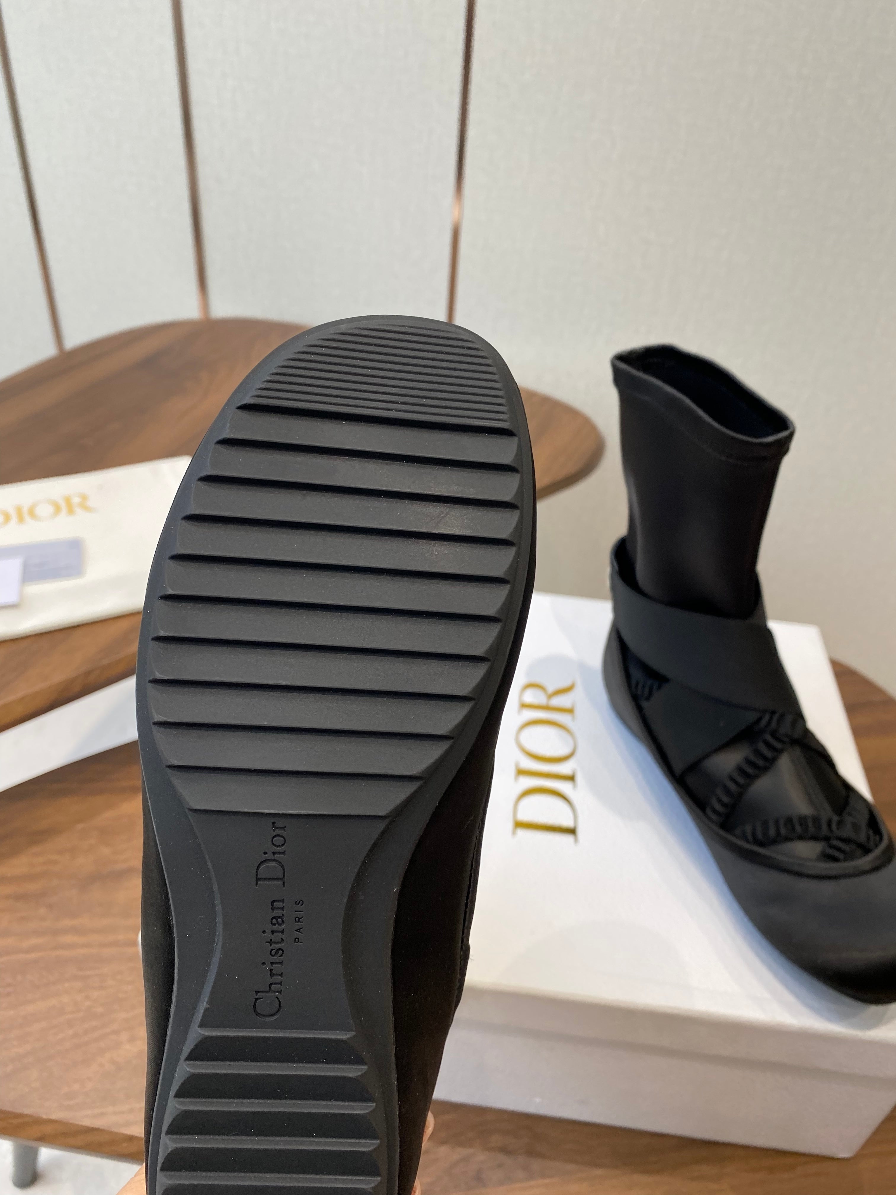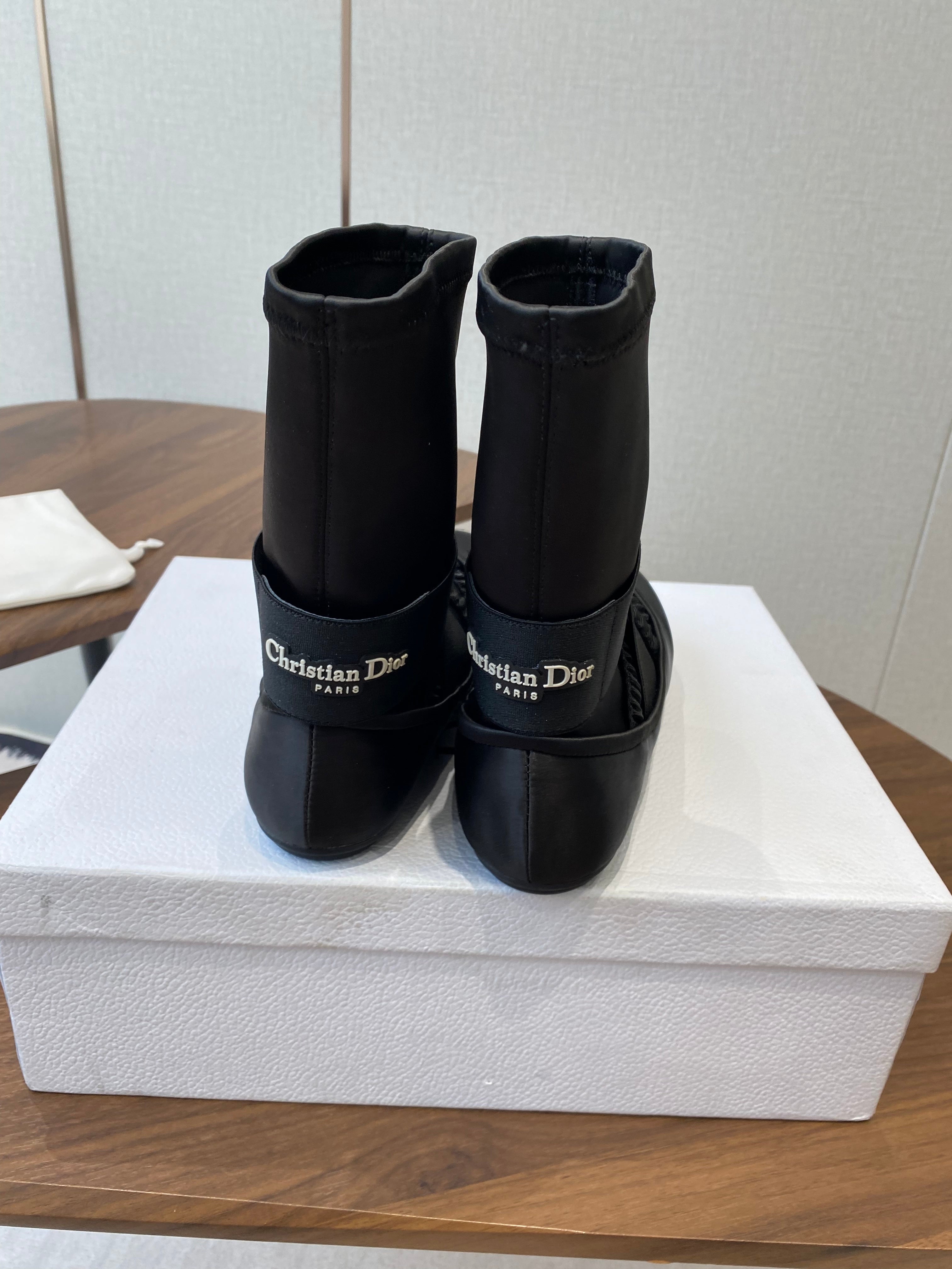 CD Ballet Stretch Boots Black Sheepskin Fabric 431502