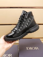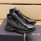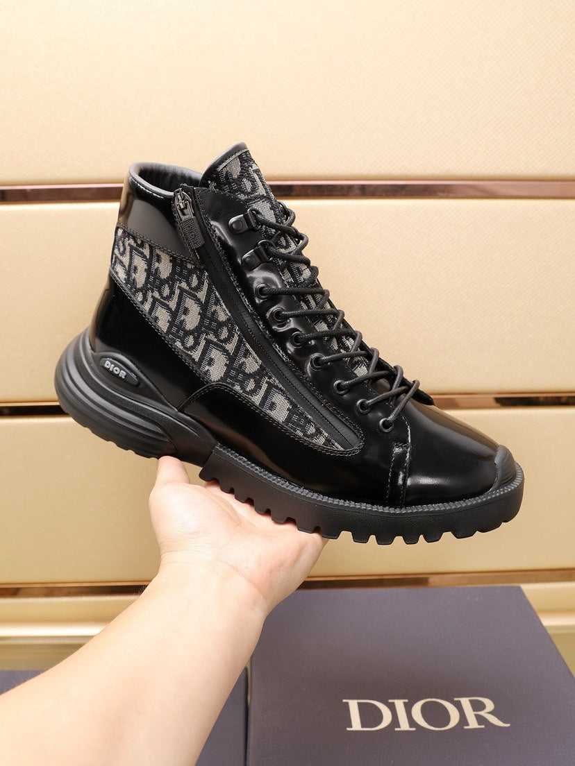CD COMBAT ANKLE BOOT BLACK AND BEIGE POLISHED CALFSKIN