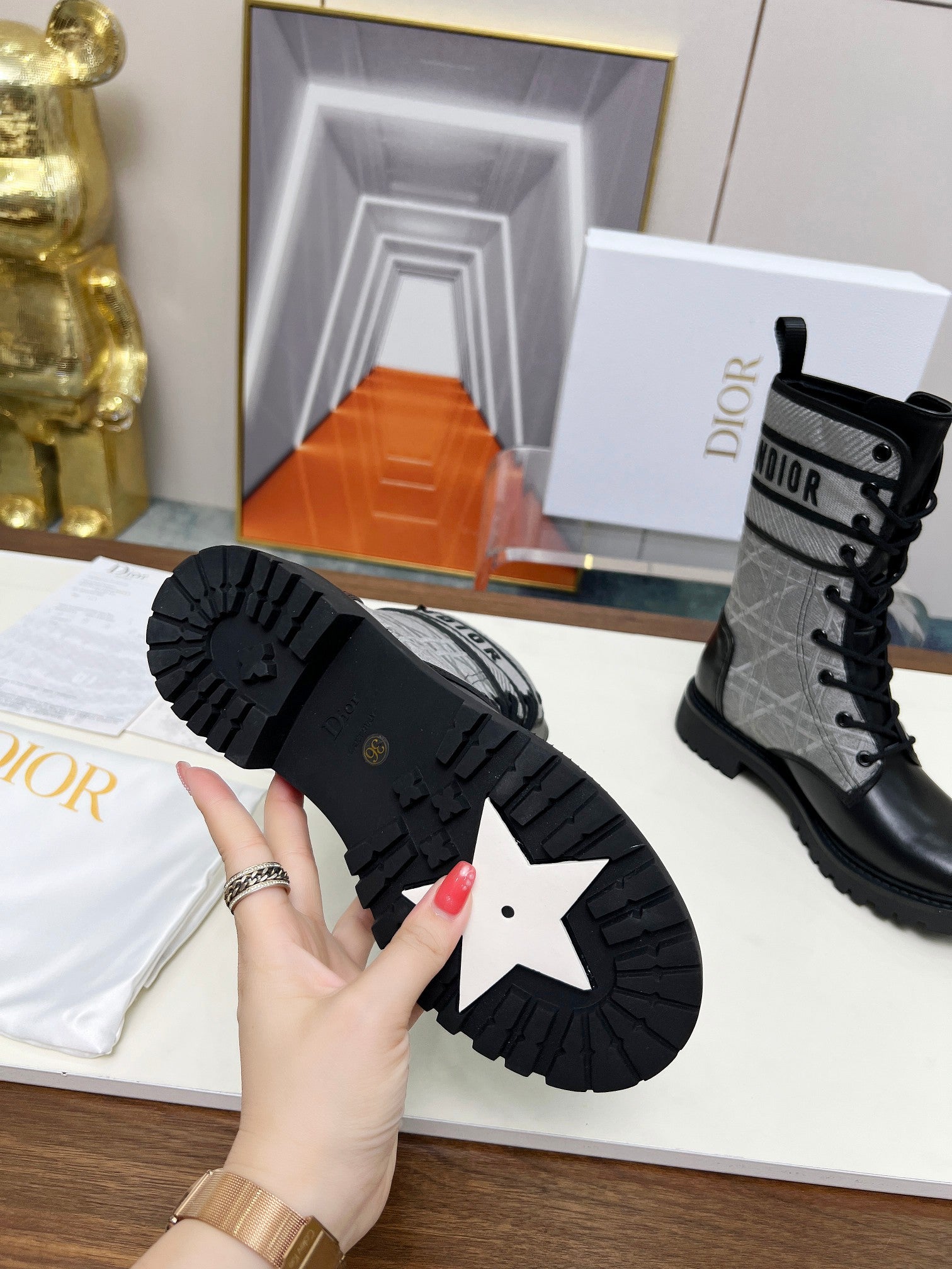 CD D-Major Ankle Boot In Grey Mix Black Denim Fabric And Lambskin 107724