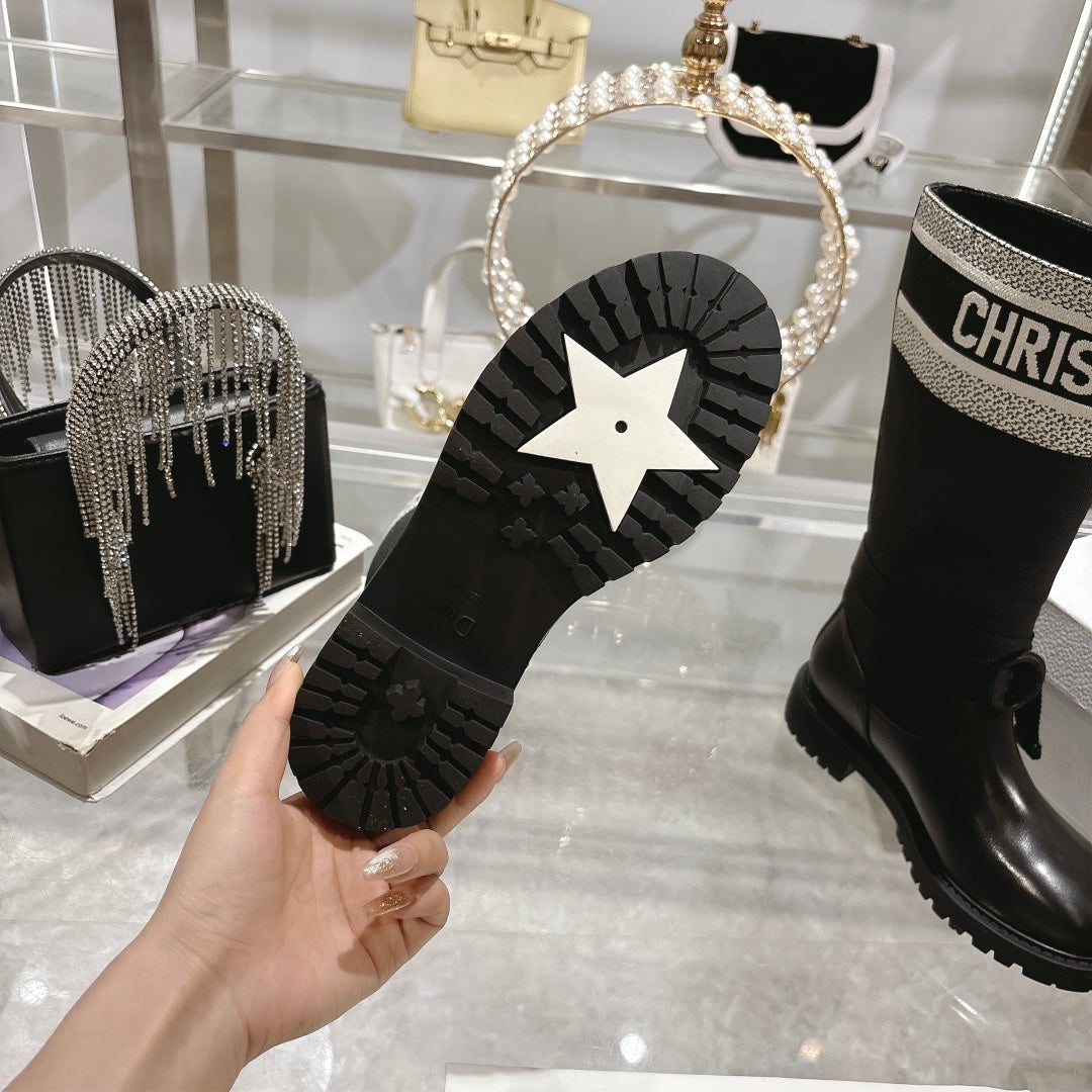 CD D-Major Boot Black Mix White Calfskin And Denim Fabric