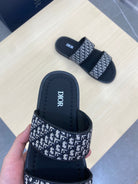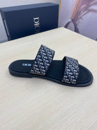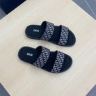 CD DOUBLE STRAP SLIPPER BLACK AND WHITE JACQUARD