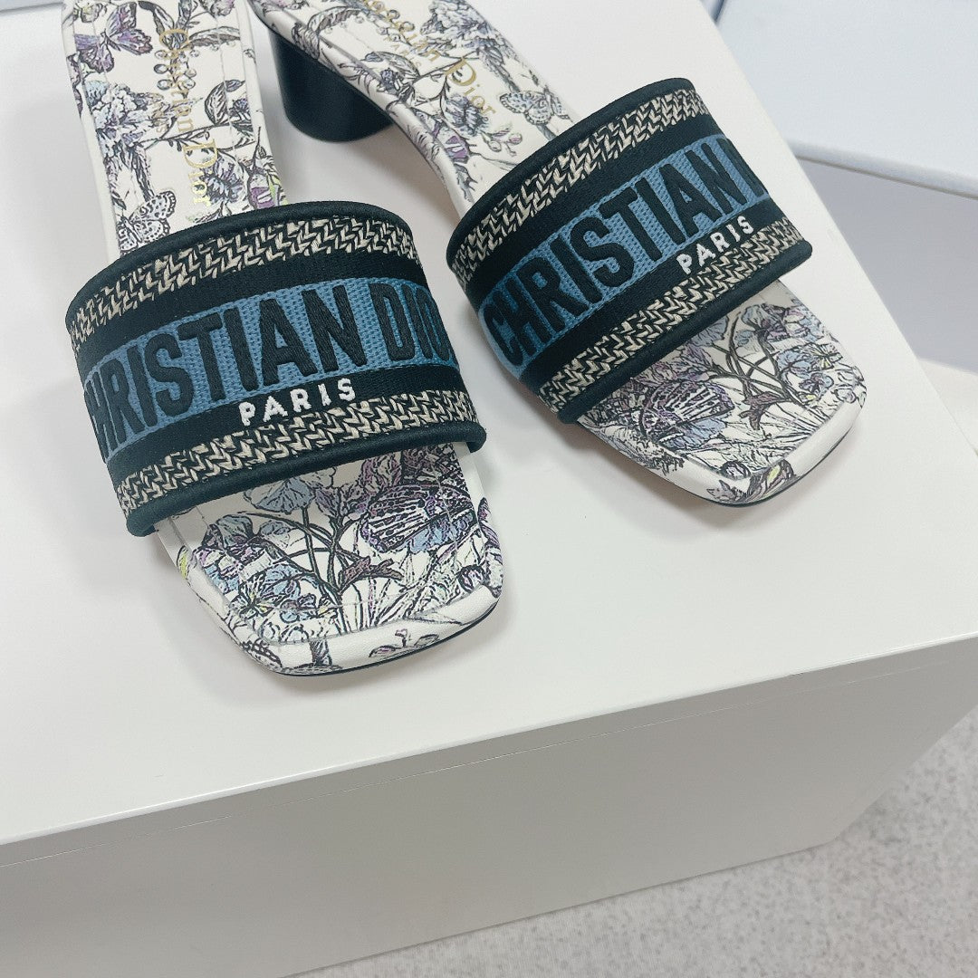cd dway slide 35 blue black cotton embroidery flowe motif