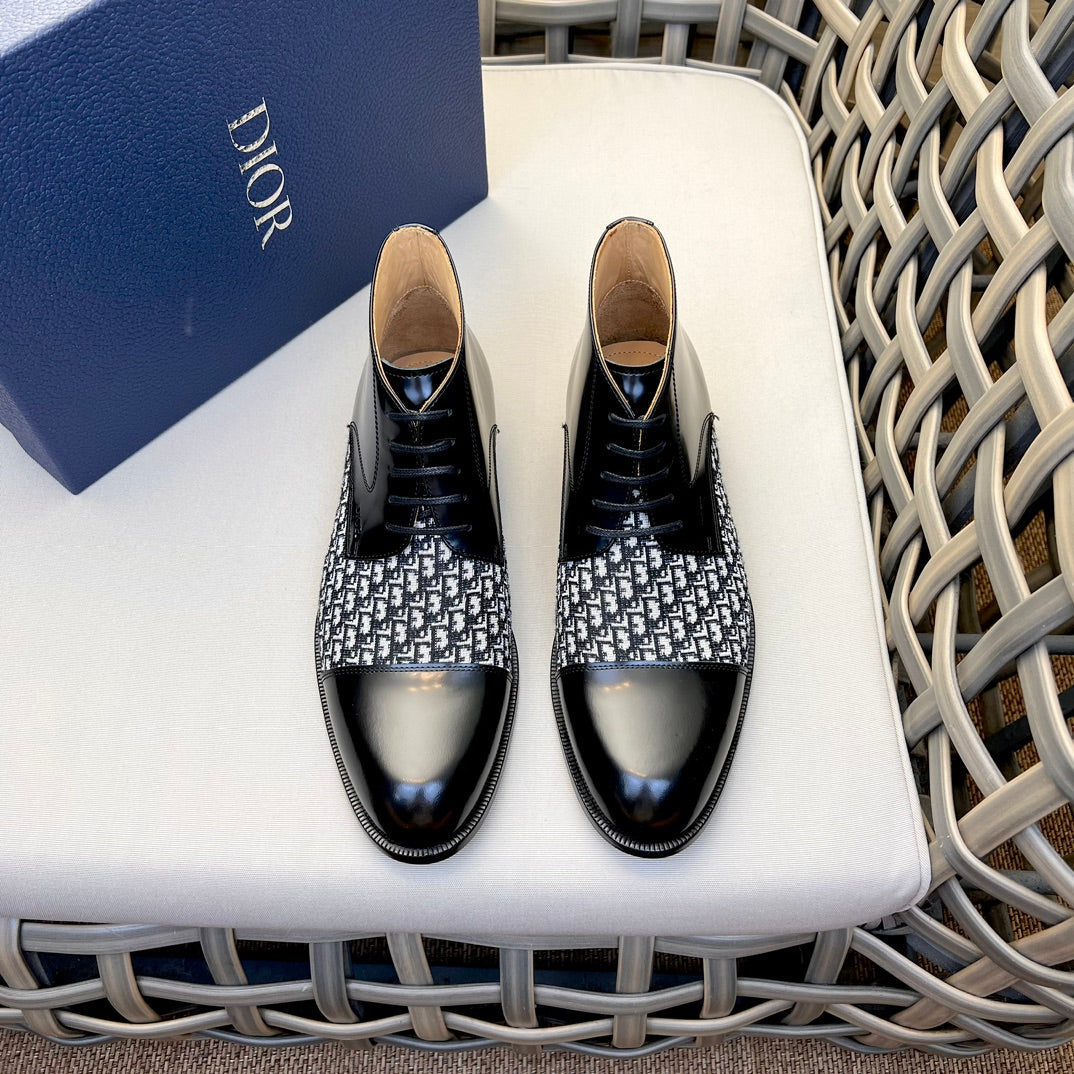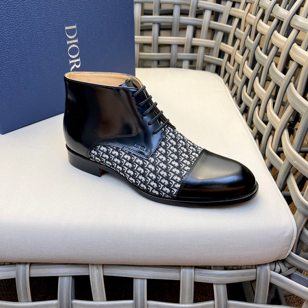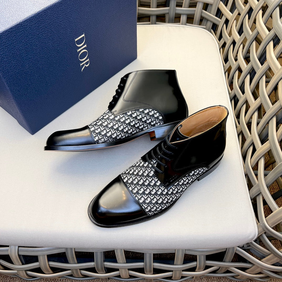 CD HOMME LACE-UP ANKLE BOOT BLACK AND WHITE CALFSKIN