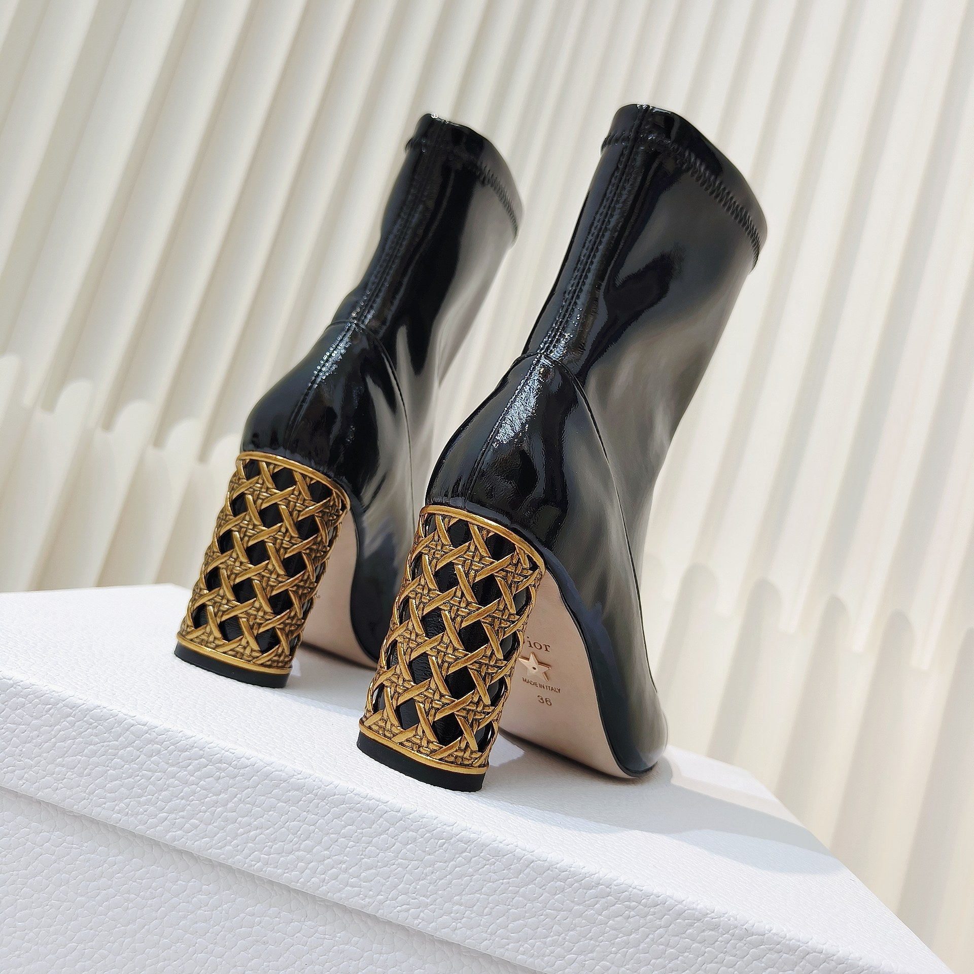 CD Icon Heeled Ankle Boot 40mm In Glossy Black Cowhide 111376