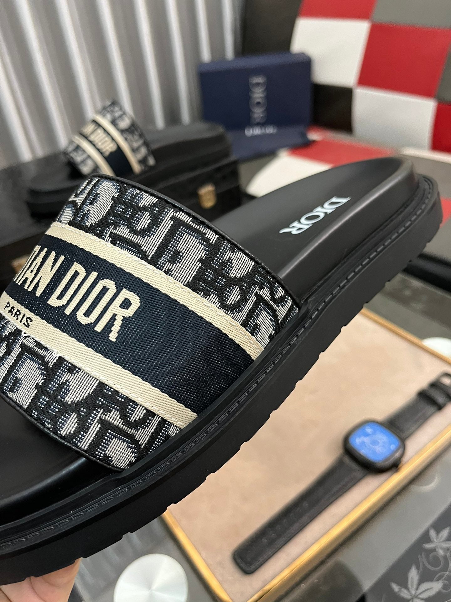 CD SLIDE LETTER SLIPPER BLACK AND GRAY CALFSKIN