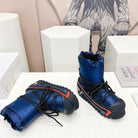 CD Snow Ankle Boots Dark Blue Cowhide Nylon Fabric 539660