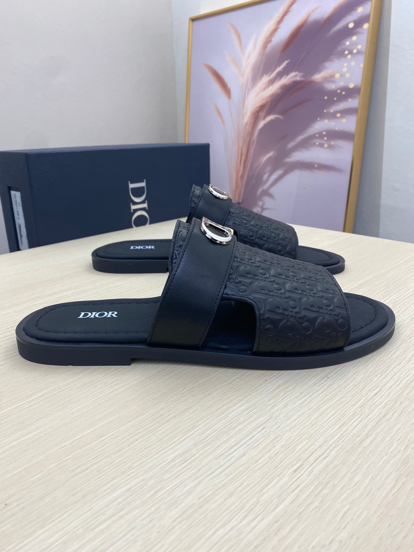 CD SYMBOL SLIDE CUT SANDAL BLACK CALSKIN