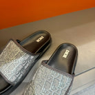 CD VELCRO STRAP SLIPPER GREY BLUE JACQUARD