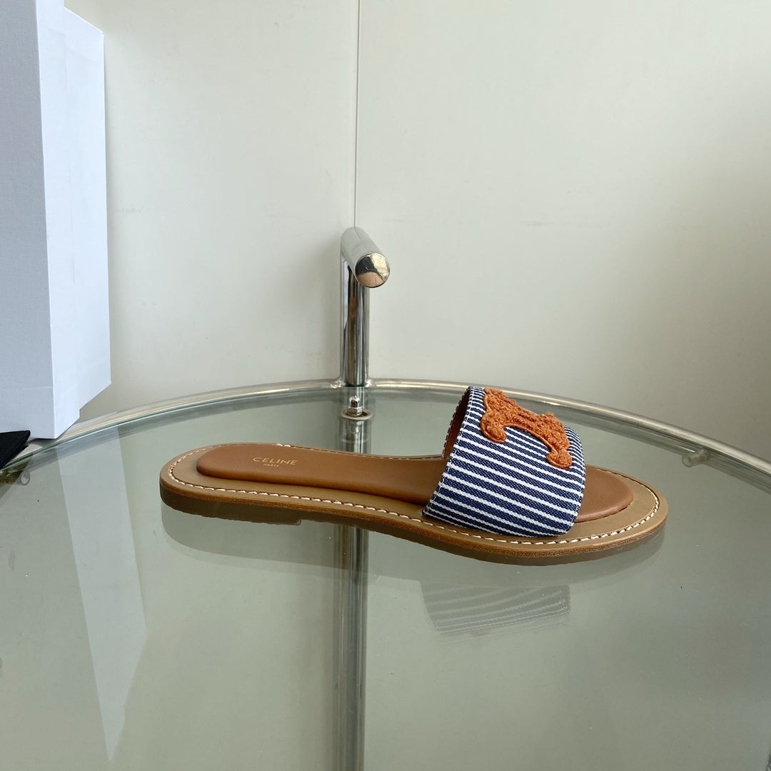 CELINE 25 Slippers Blue Stripe Orange Denim 285981