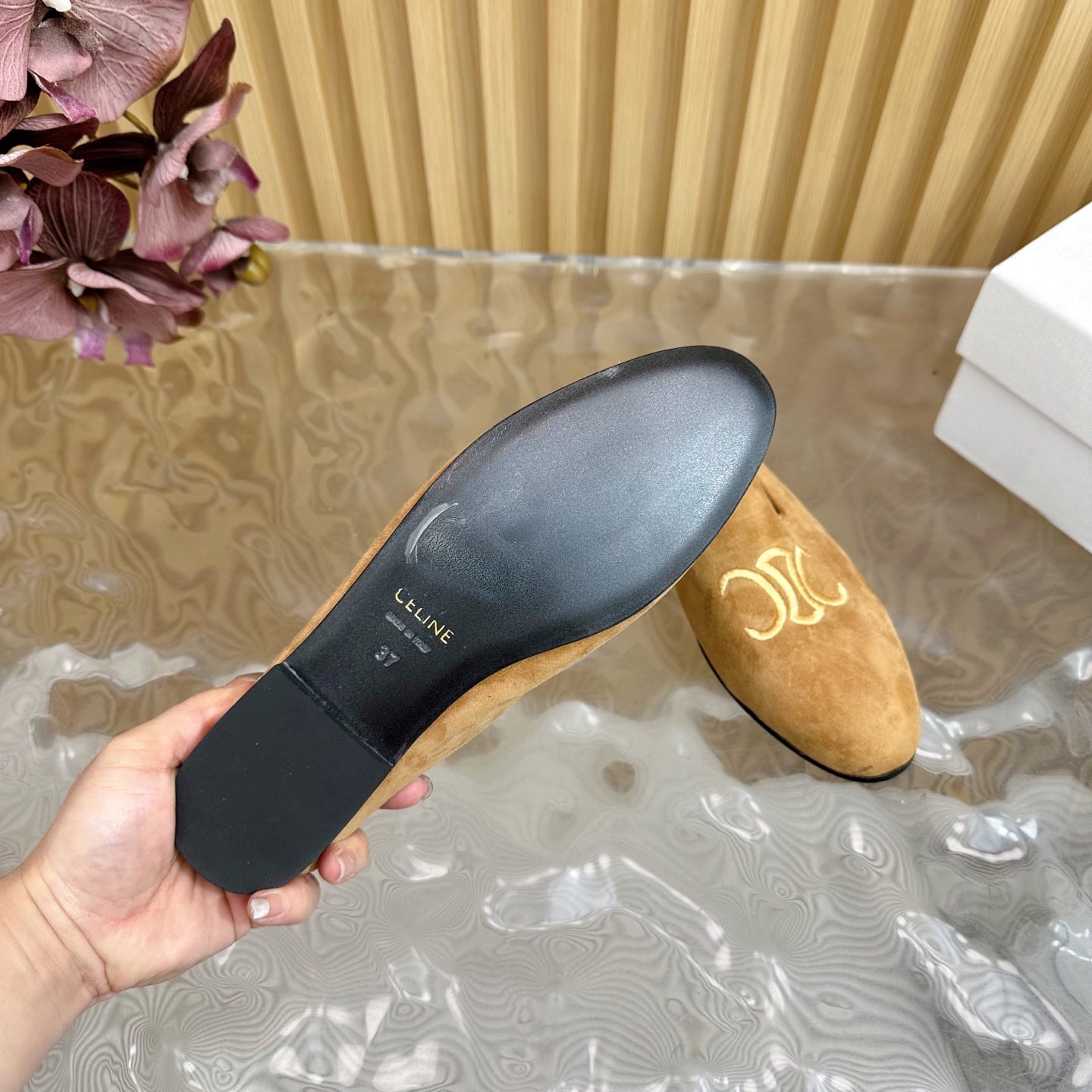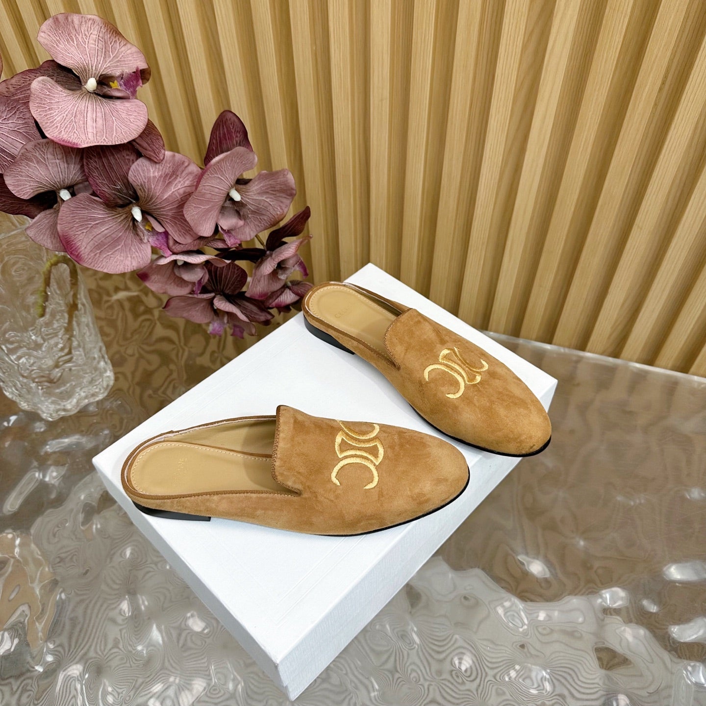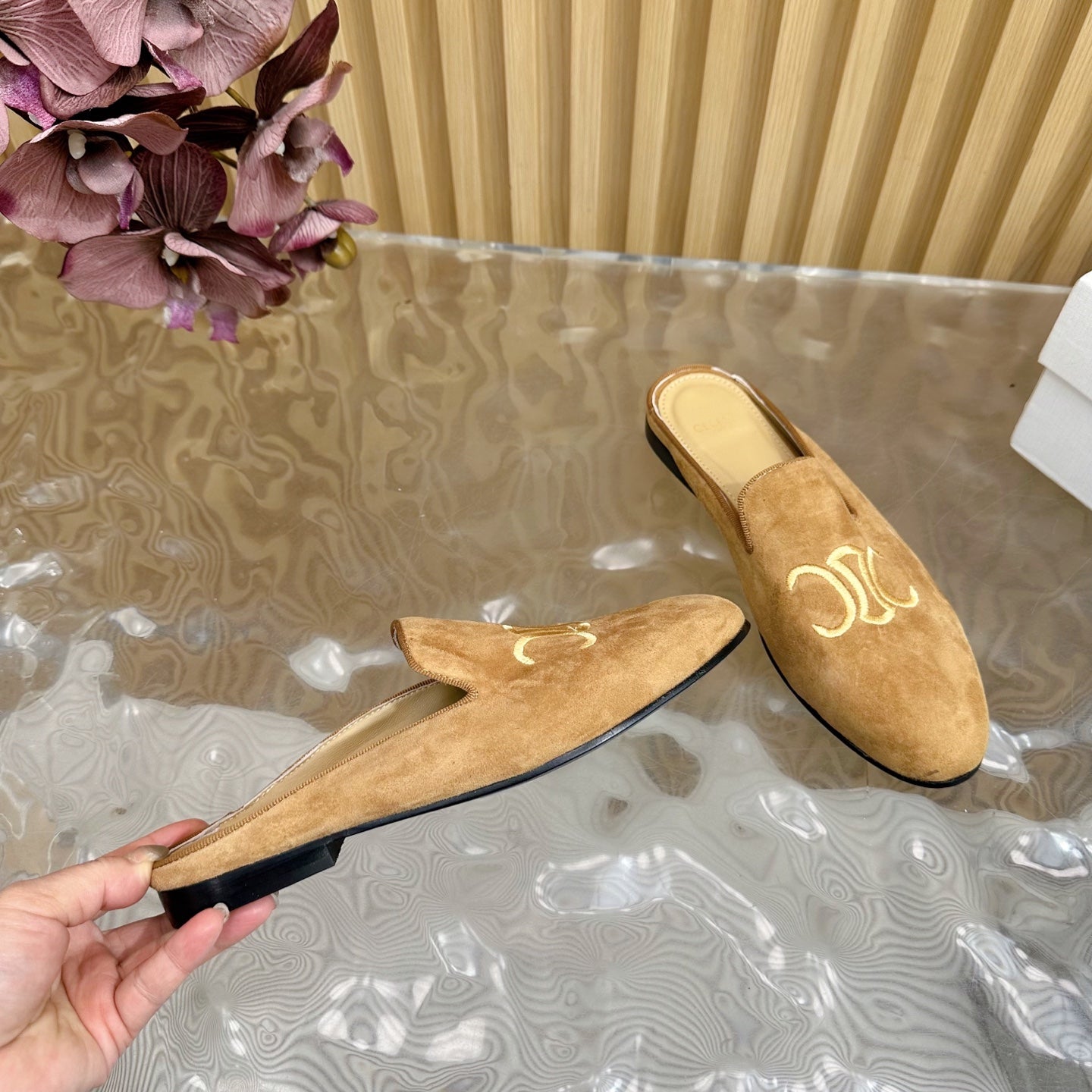 CELINE 25 Slippers Brown Suede 285916