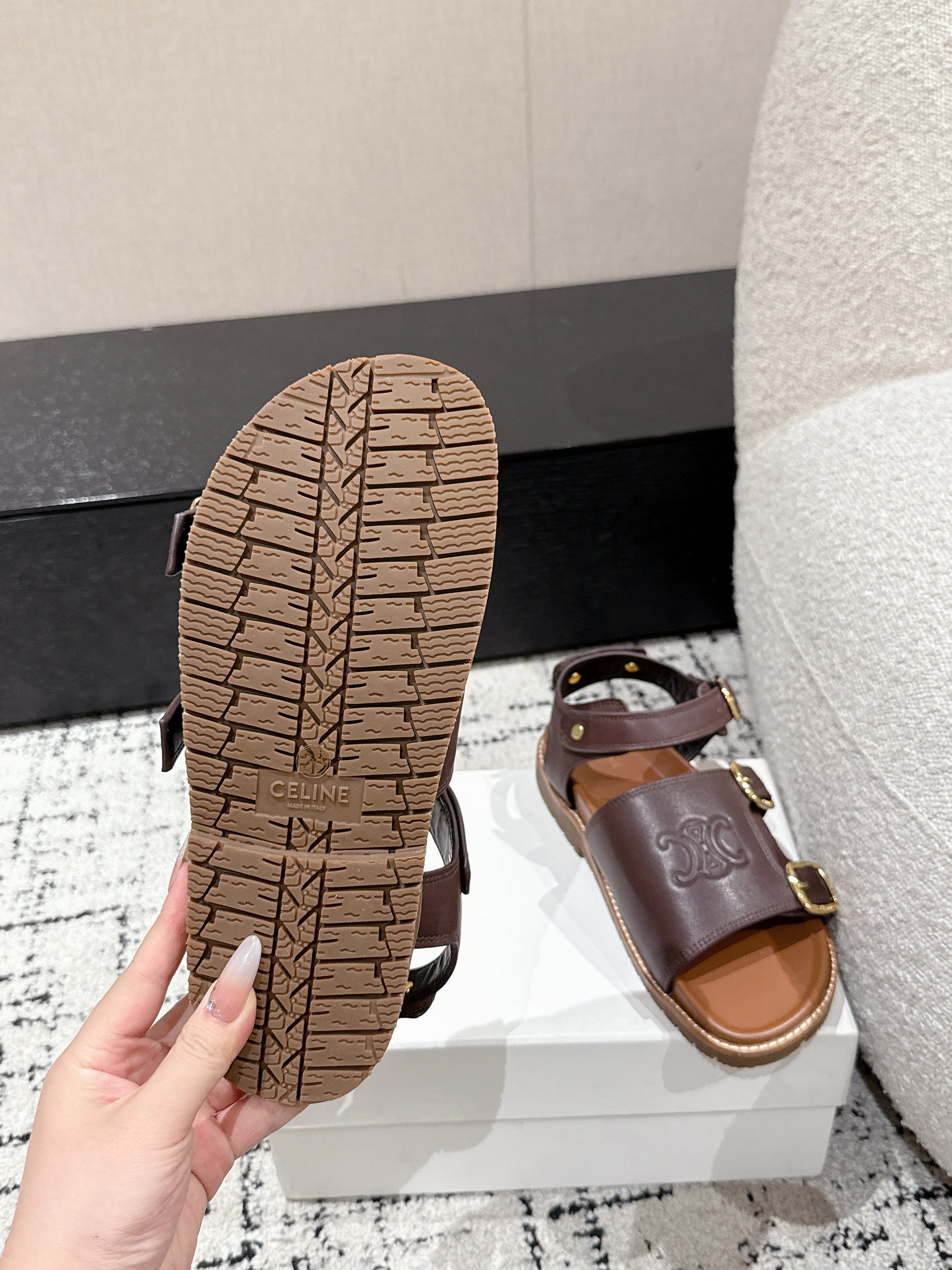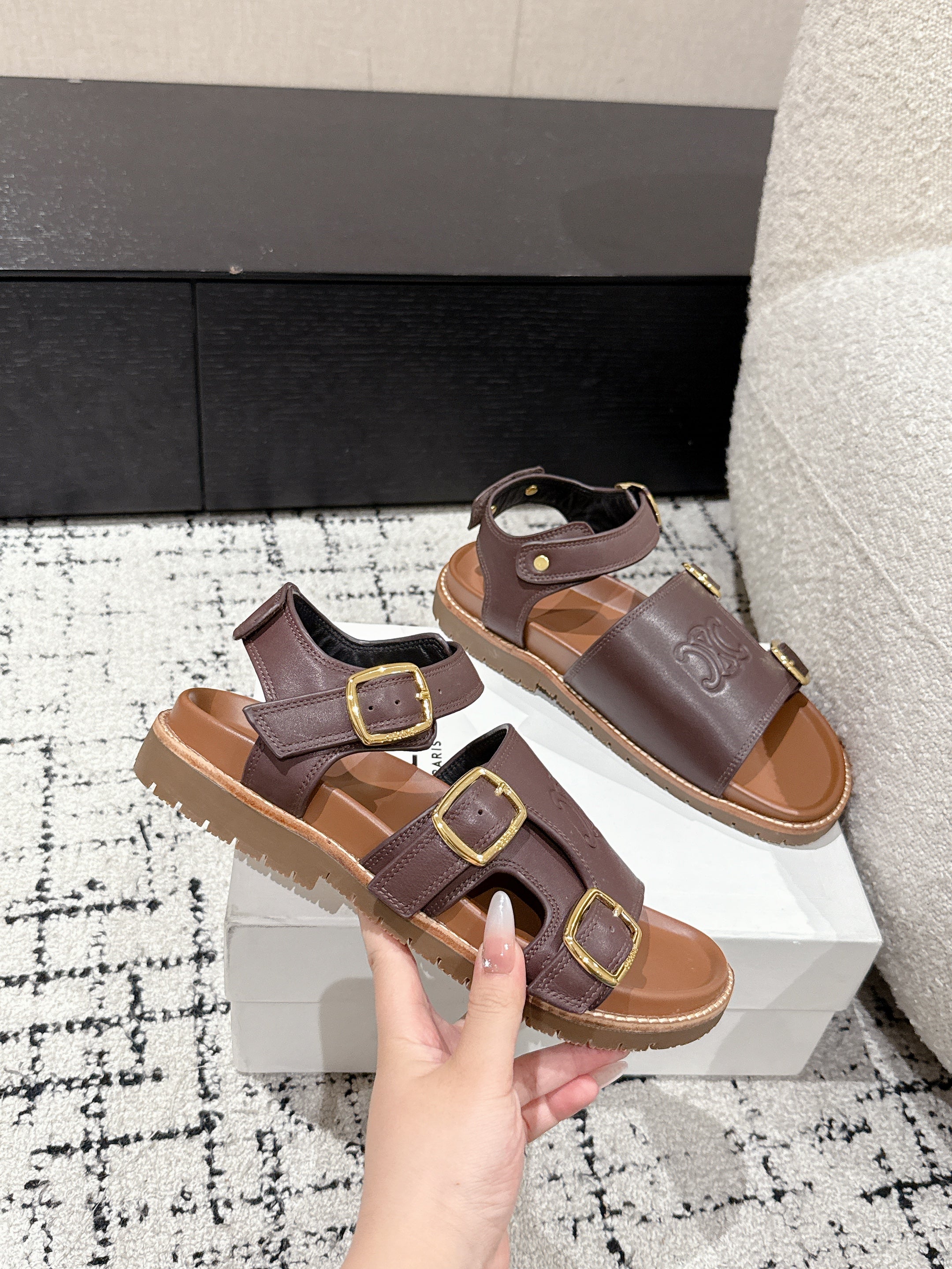 CELINE 25C Dad Sandal Mule Hickory Brown Cowhide 232352