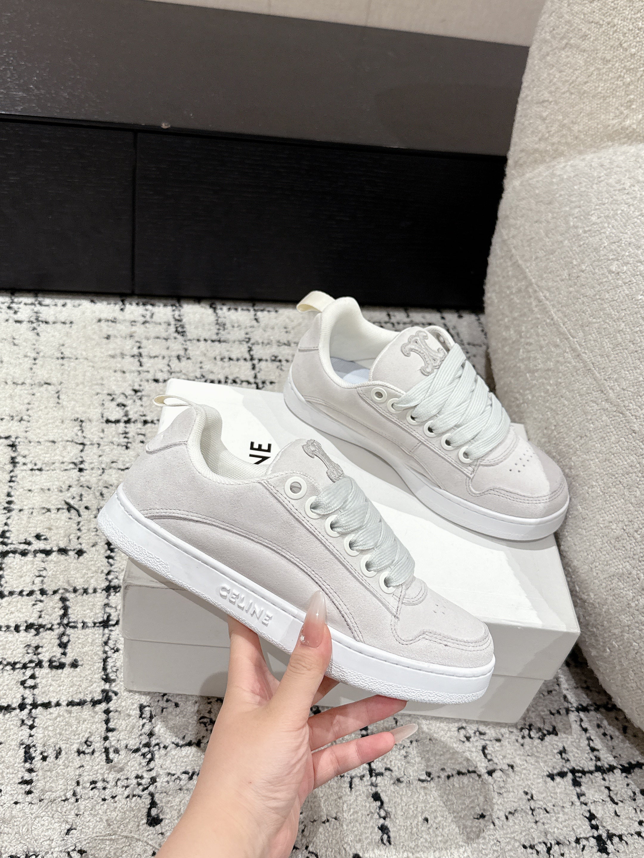 CELINE 25C Huntington Low Top Sneaker White Suede 232344