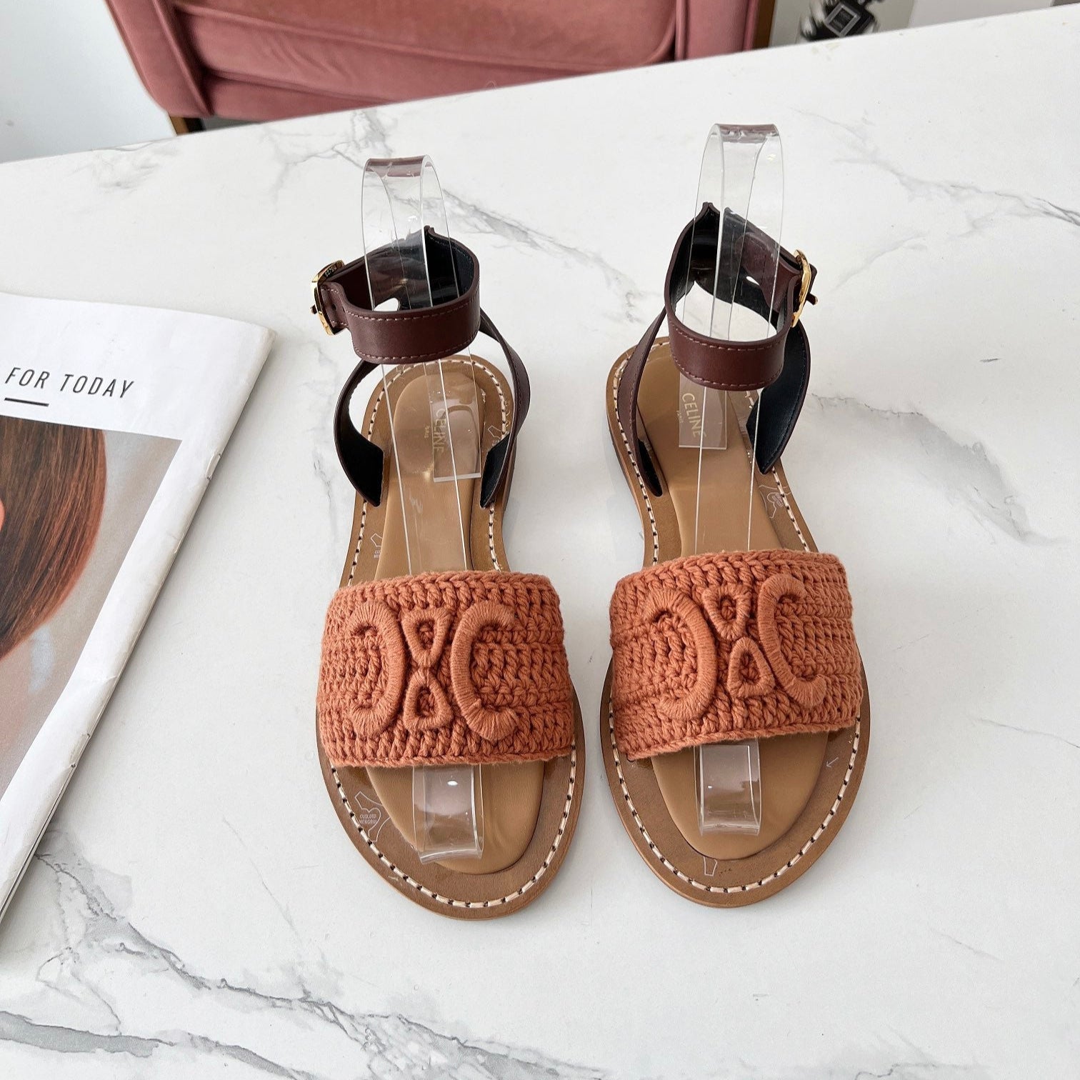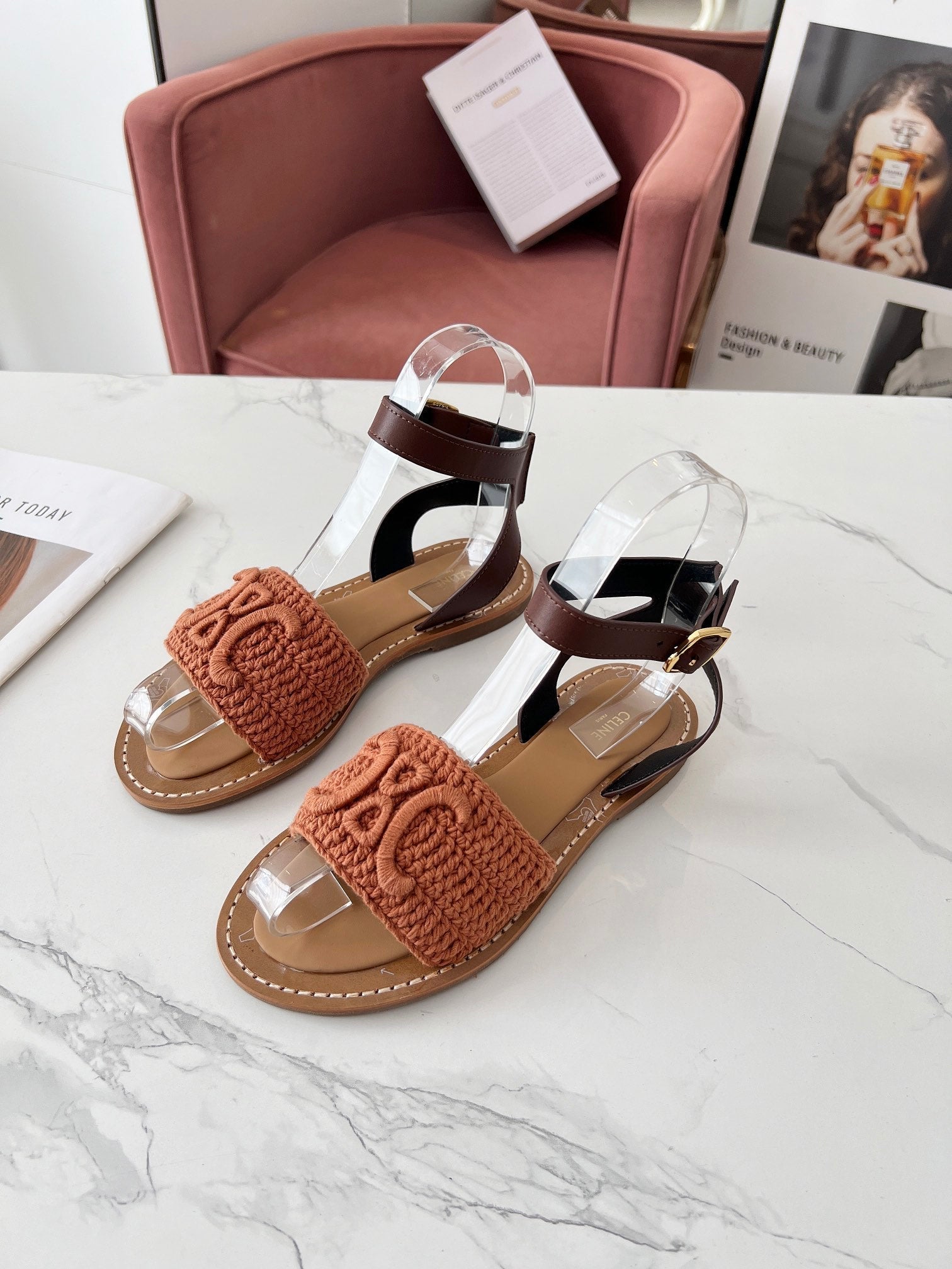Celine 25C Lympia Sandal Melon Orange Fabric with Calfskin 238174