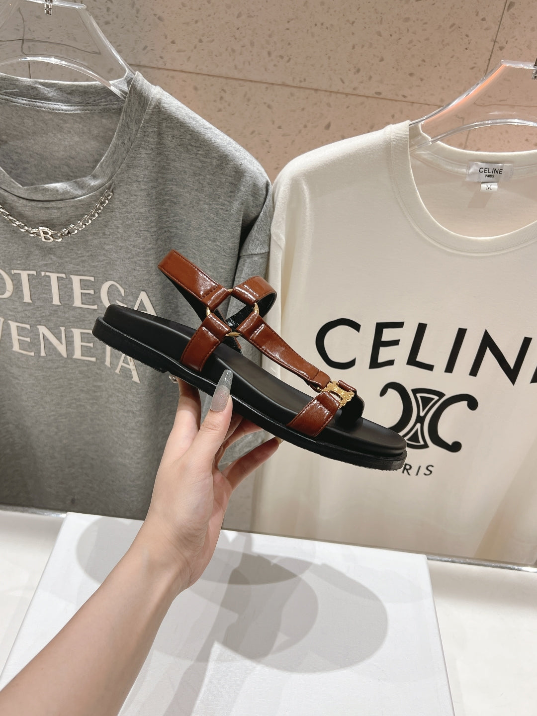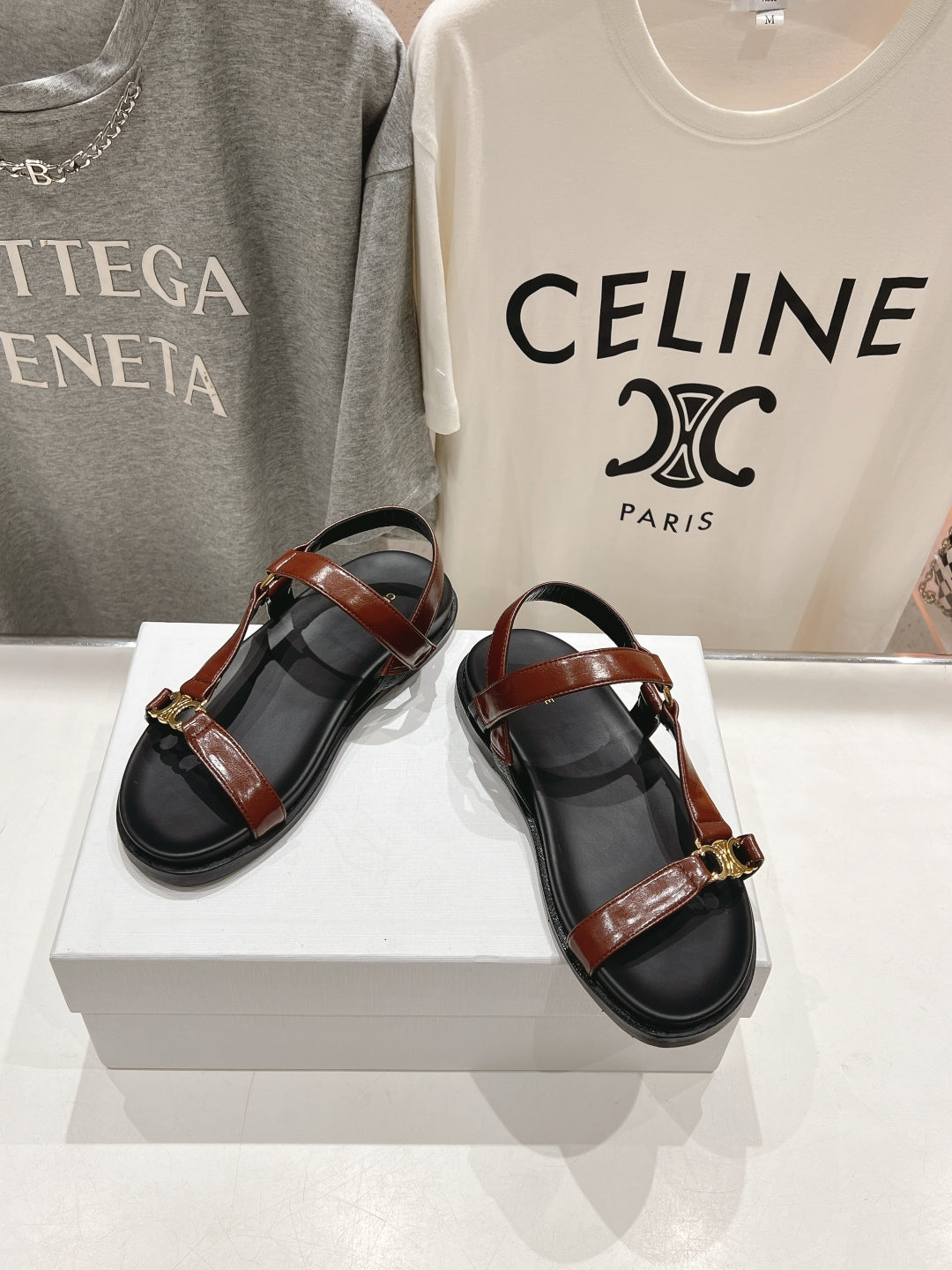 CELINE MAUD SANDAL WITH TRIOMPHE DEEP BROWN COWHIDE 236756