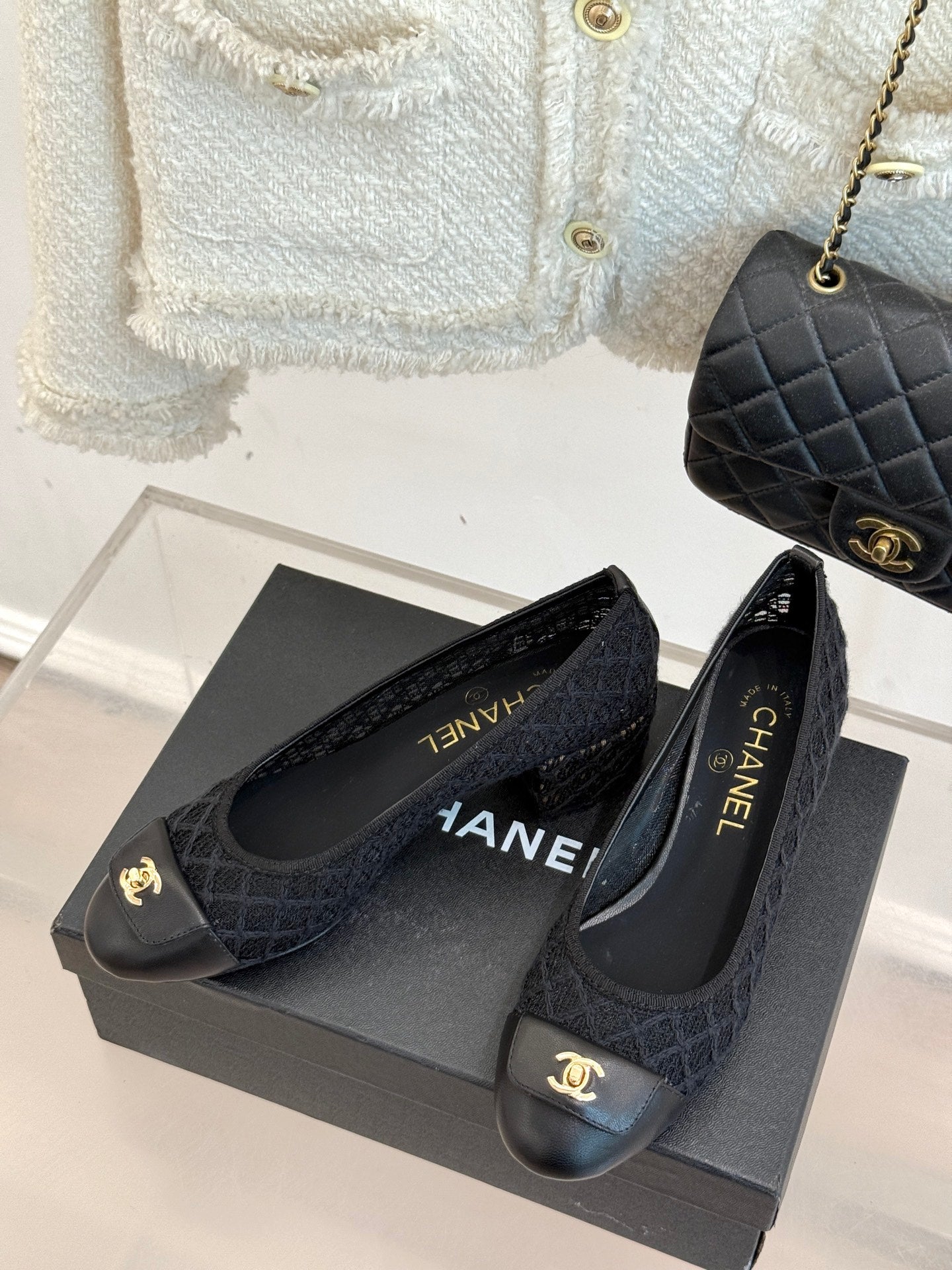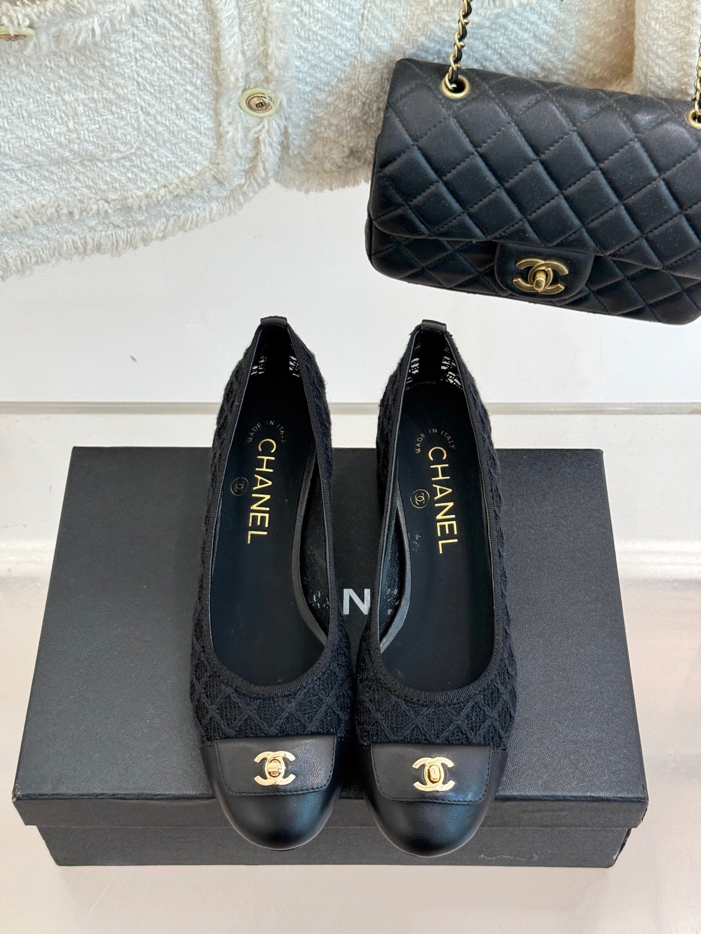 Chanel 25 Ballet Flat 50mm Black Woven Lambskin 473051