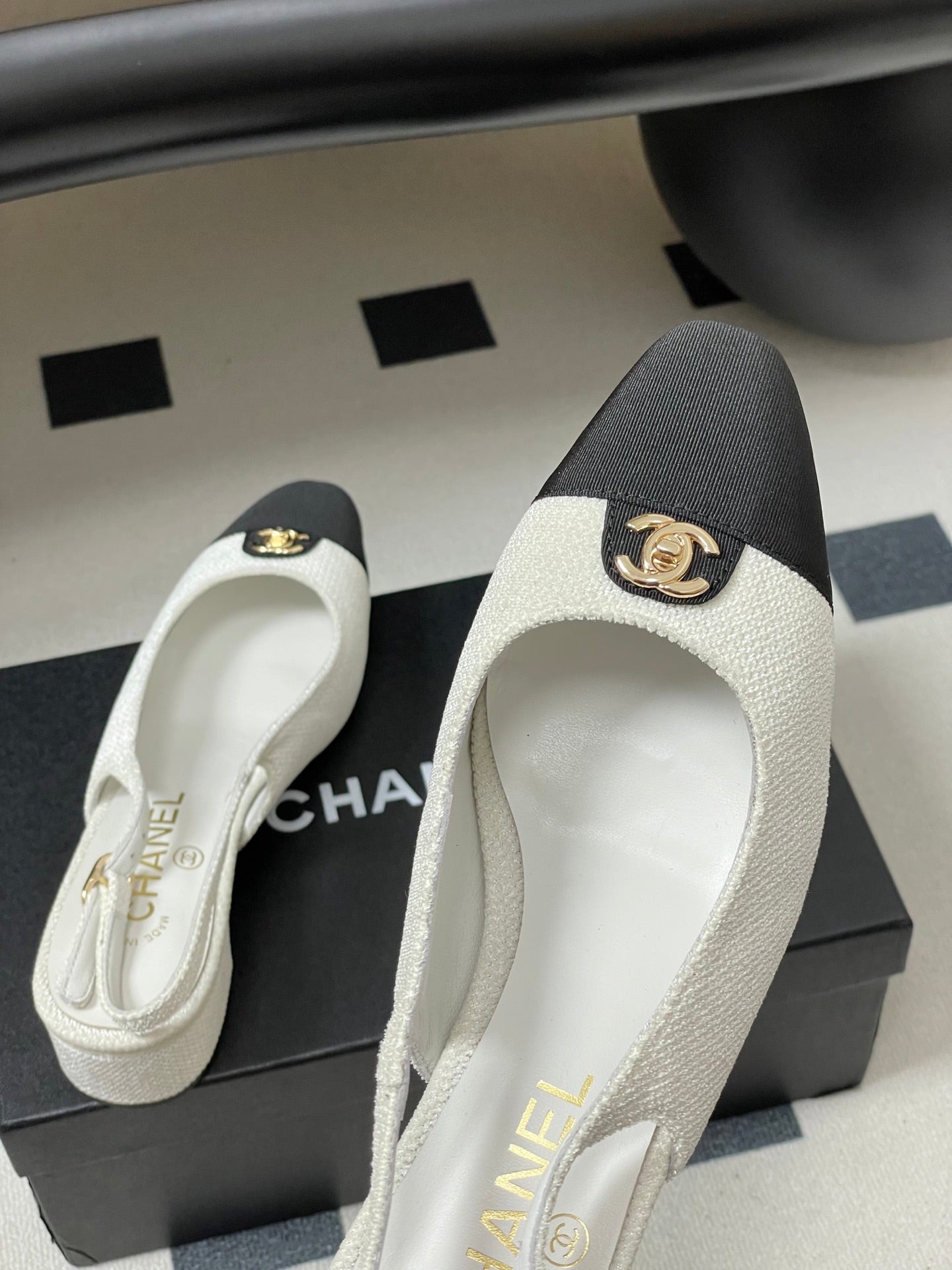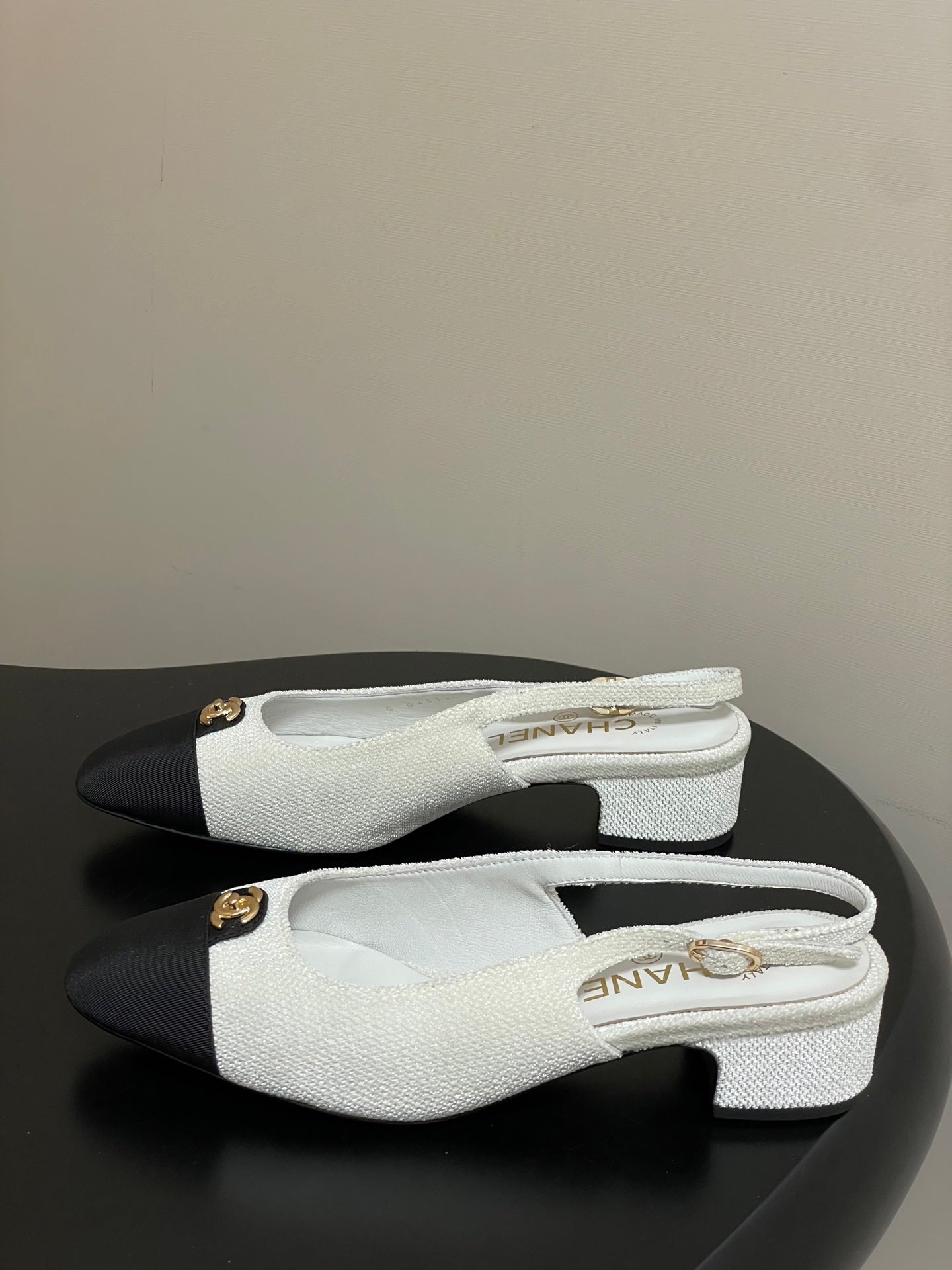 Chanel 25 Slingback Black White Lambskin Fabric 473211