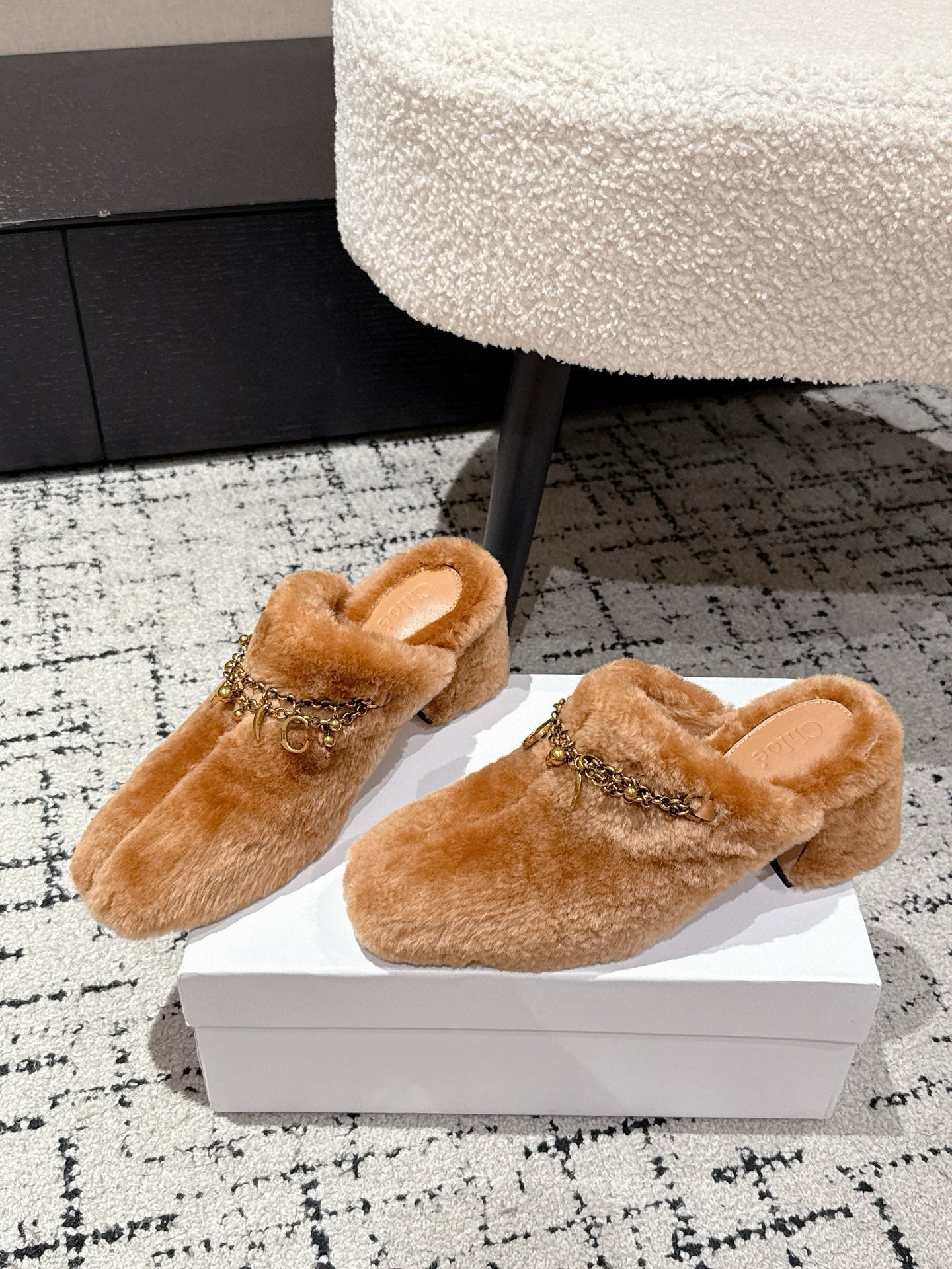 Chloe Covered Fur Slippers Caramel Brown Wool 514330