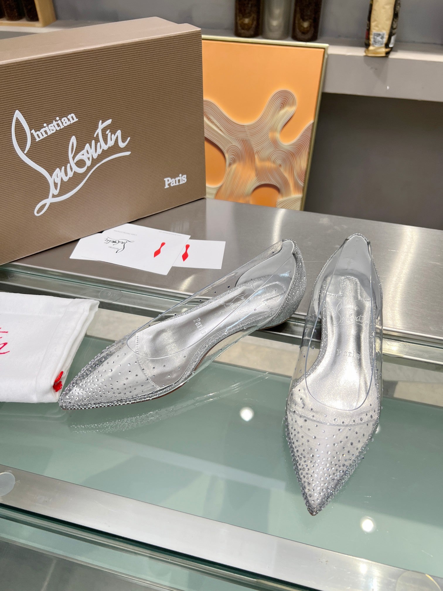 CL Degrastrass Flats Silver PVC and Strass Silver