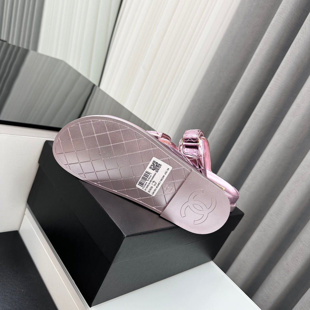 dad sandals pink metalic lambskin mules