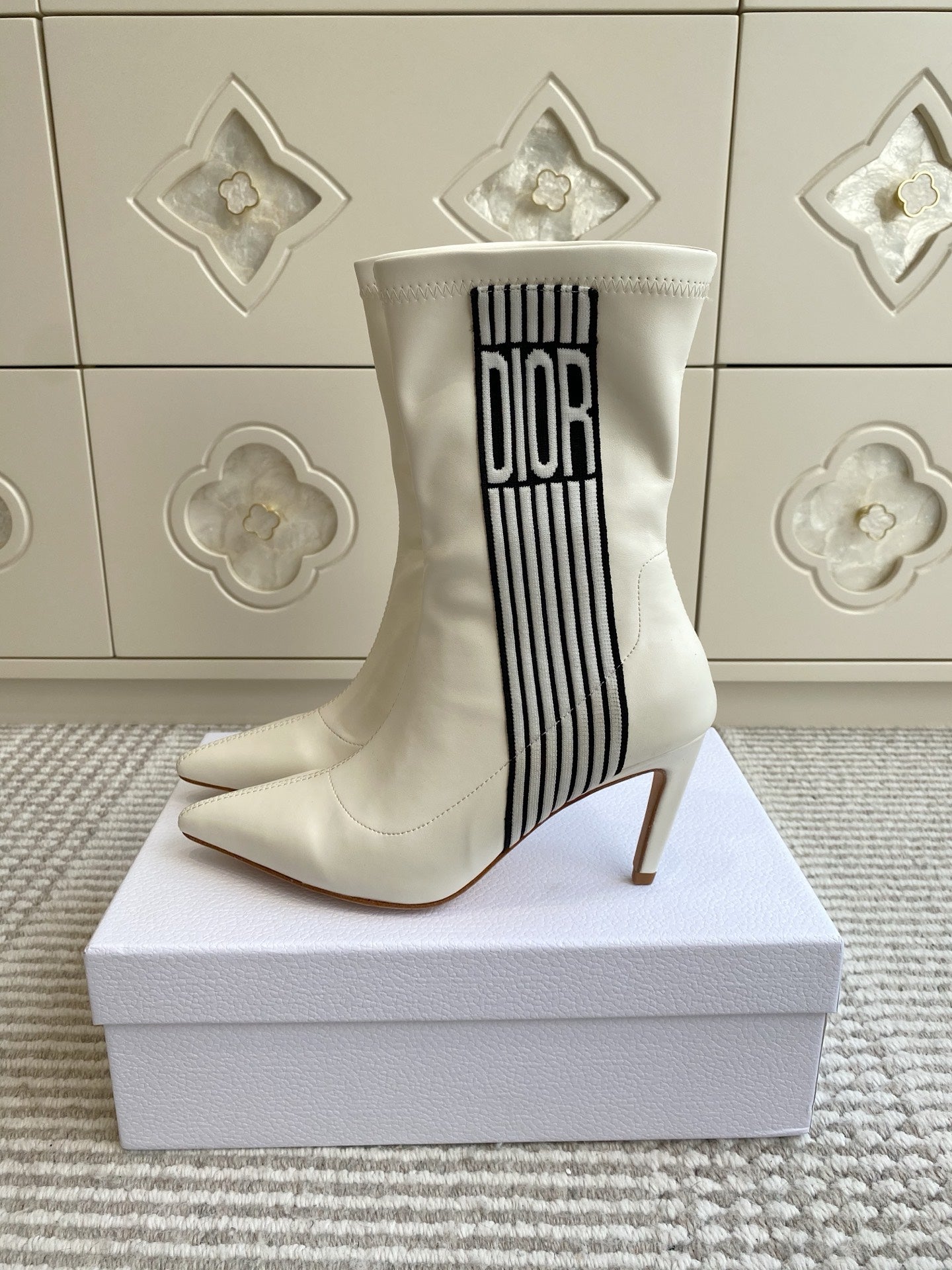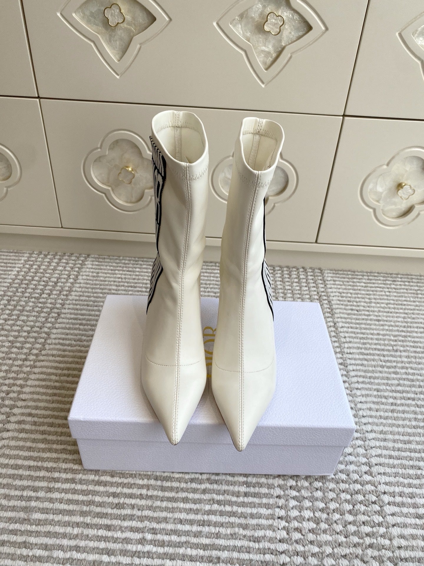 Dior 2025 Tribales Heeled Ankle Boot 80mm White Lambskin 501193