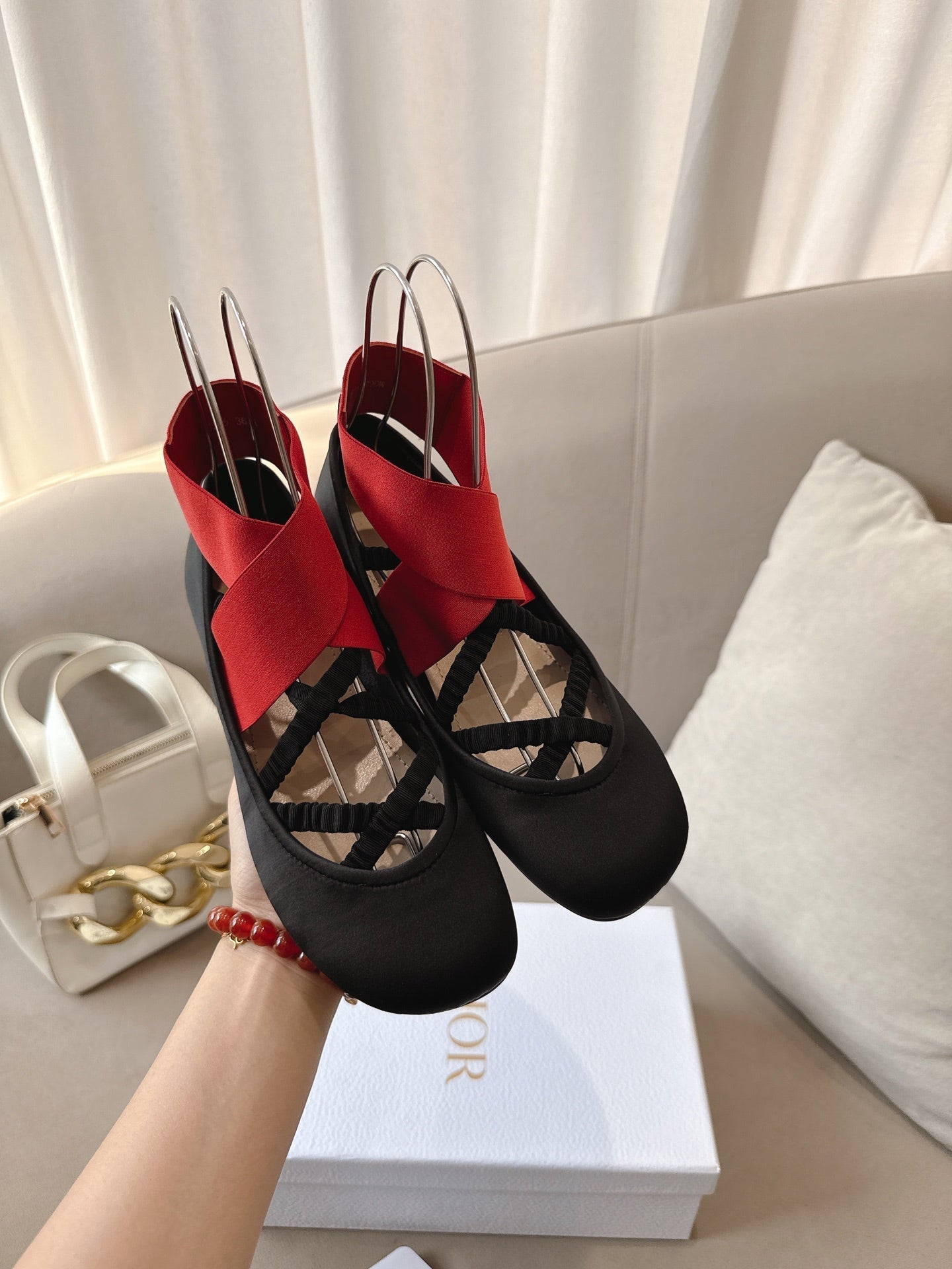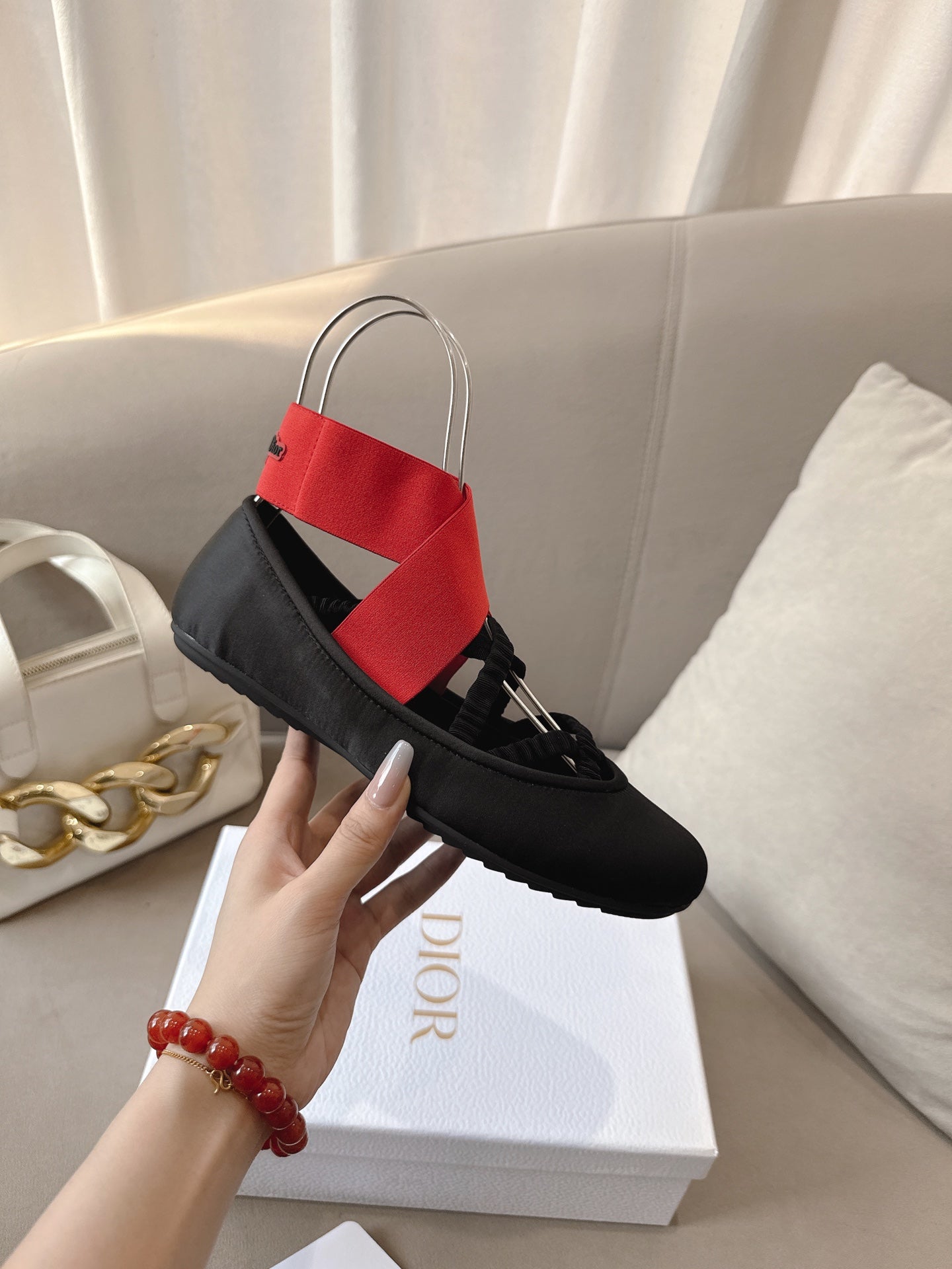 Dior Ballet Shoe Black Red Sheepskin Frabic 174737