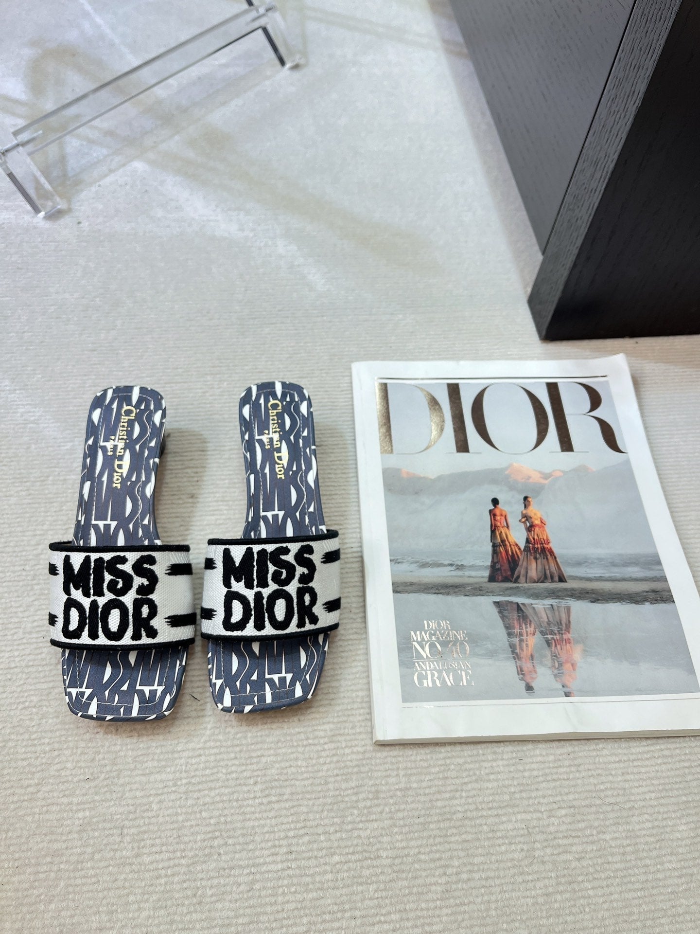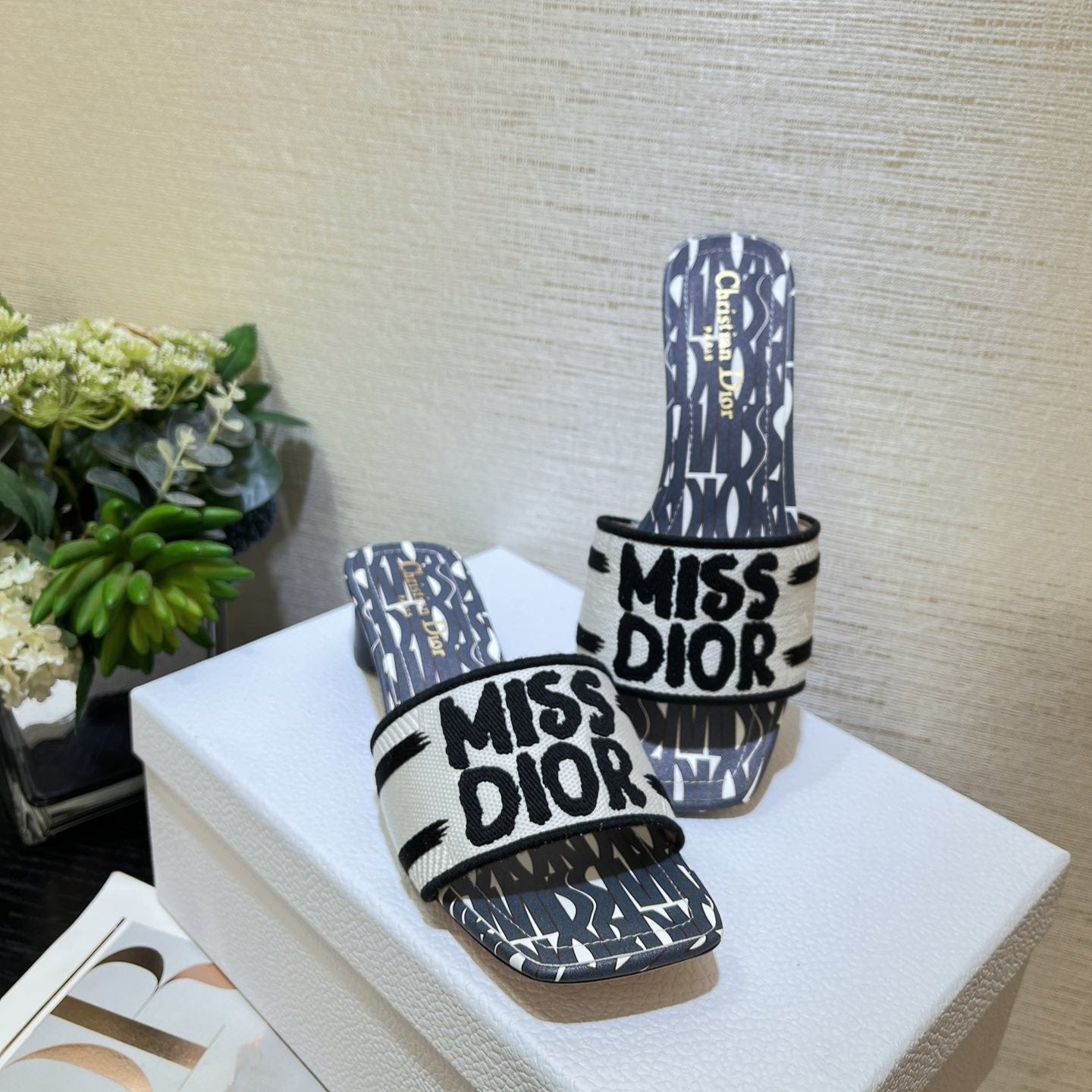 dway heeled slide 35 embroidered cotton grey miss cd alllover motif