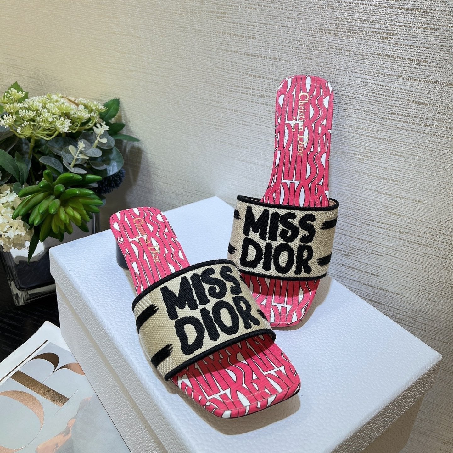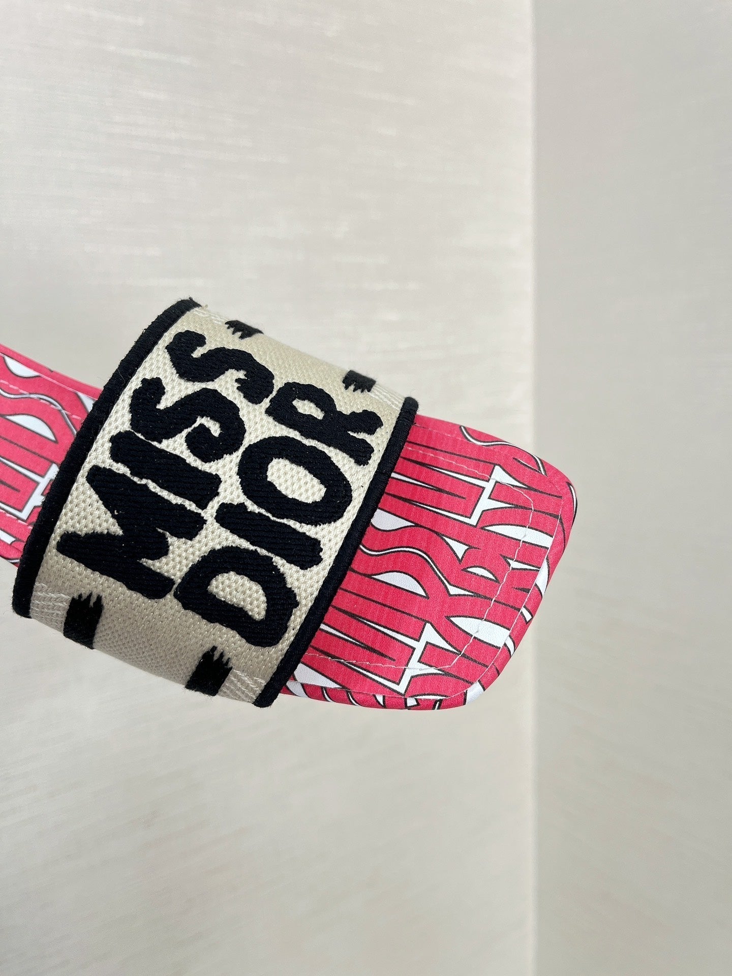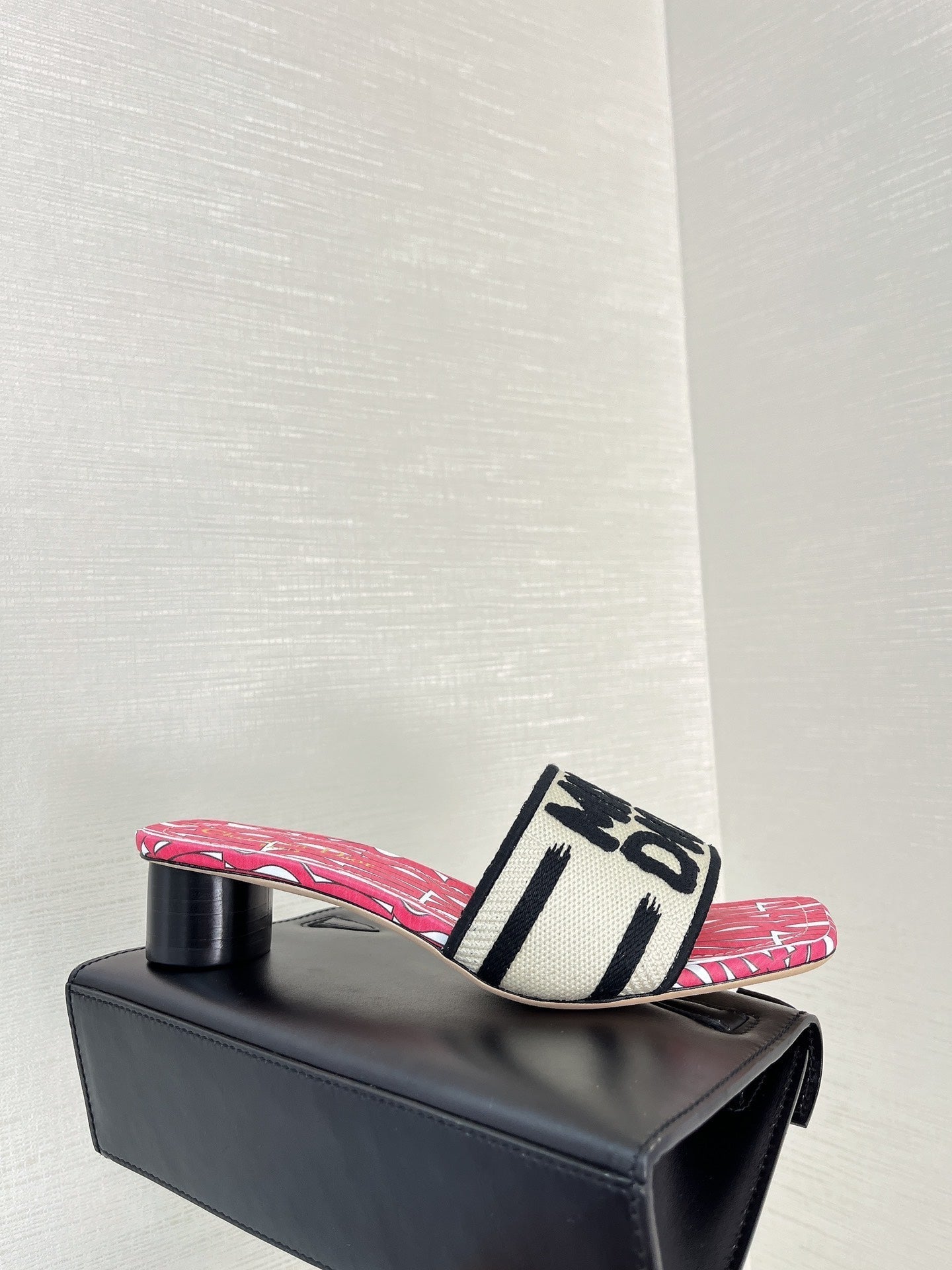 dway heeled slide 35 embroidered cotton red miss cd alllover motif