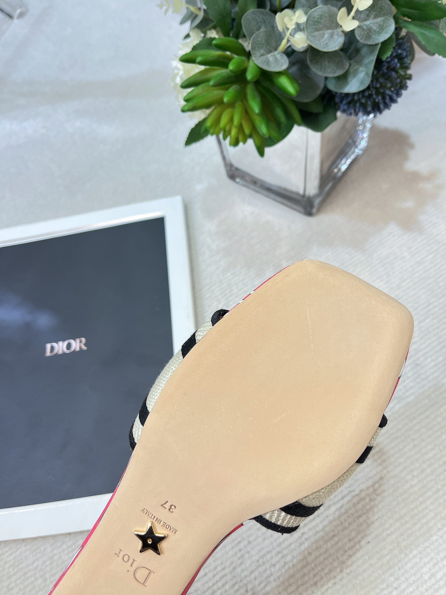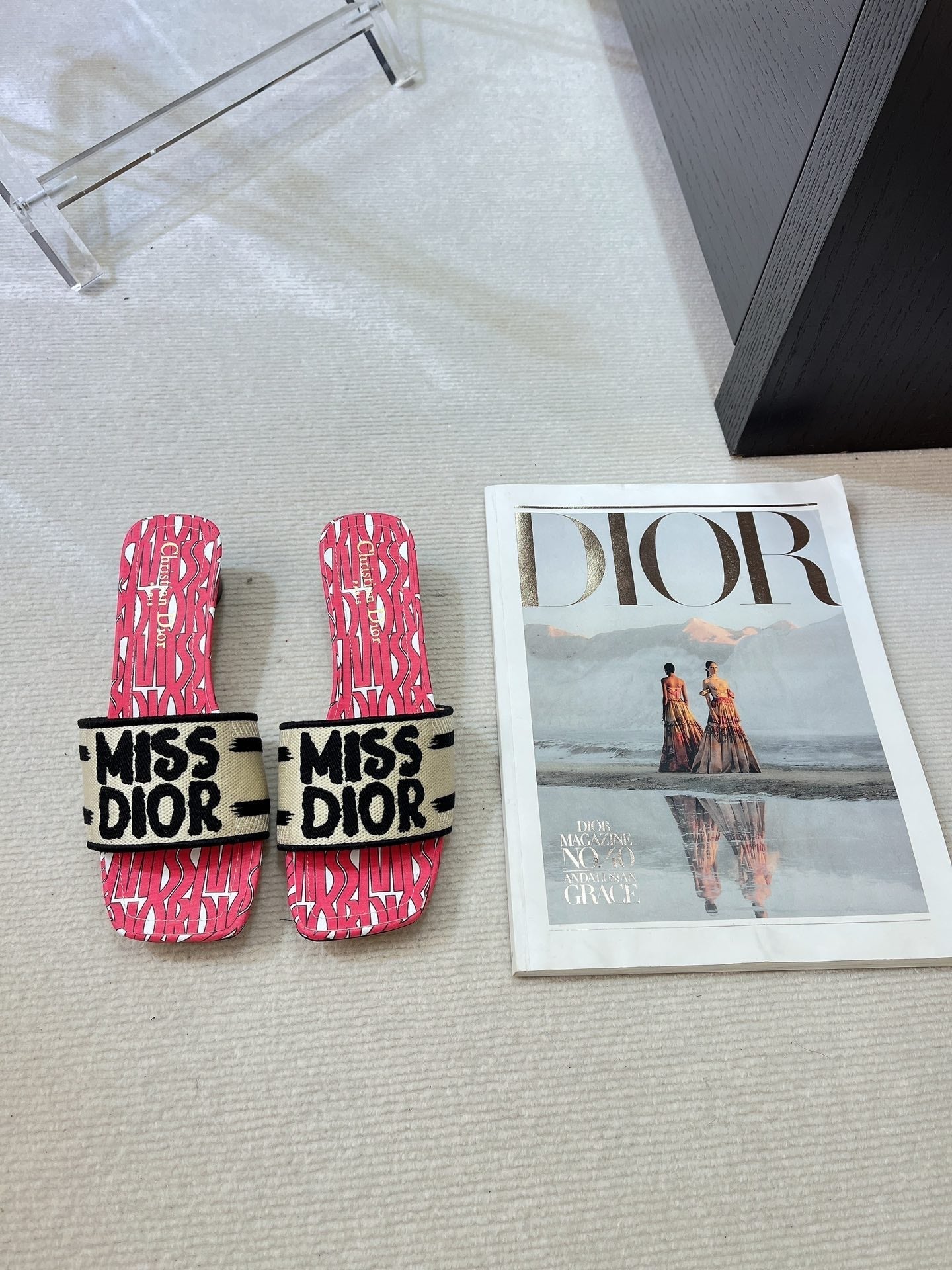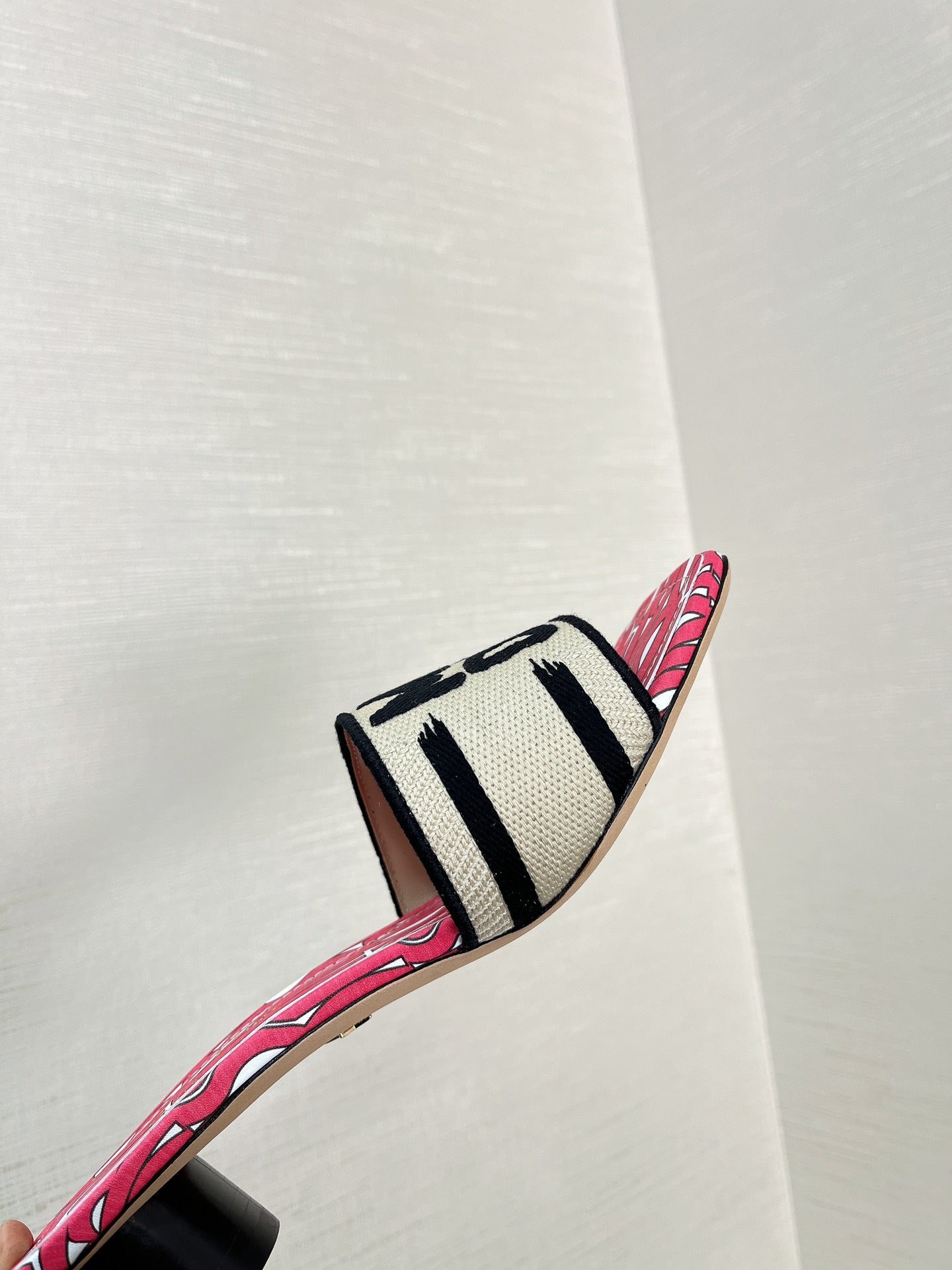 dway heeled slide 35 embroidered cotton red miss cd alllover motif