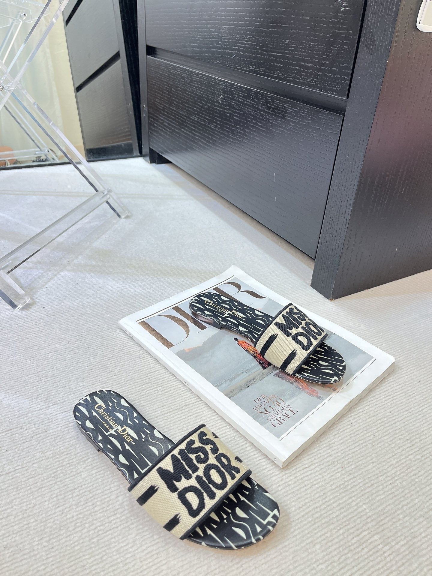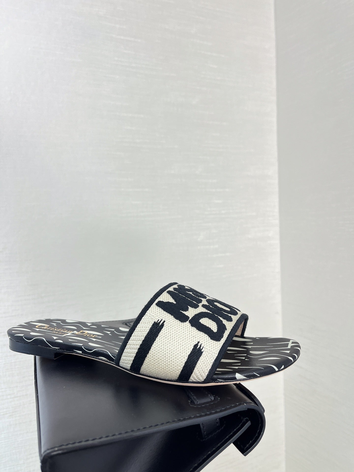 dway slide embroidered cotton black miss cd alllover motif