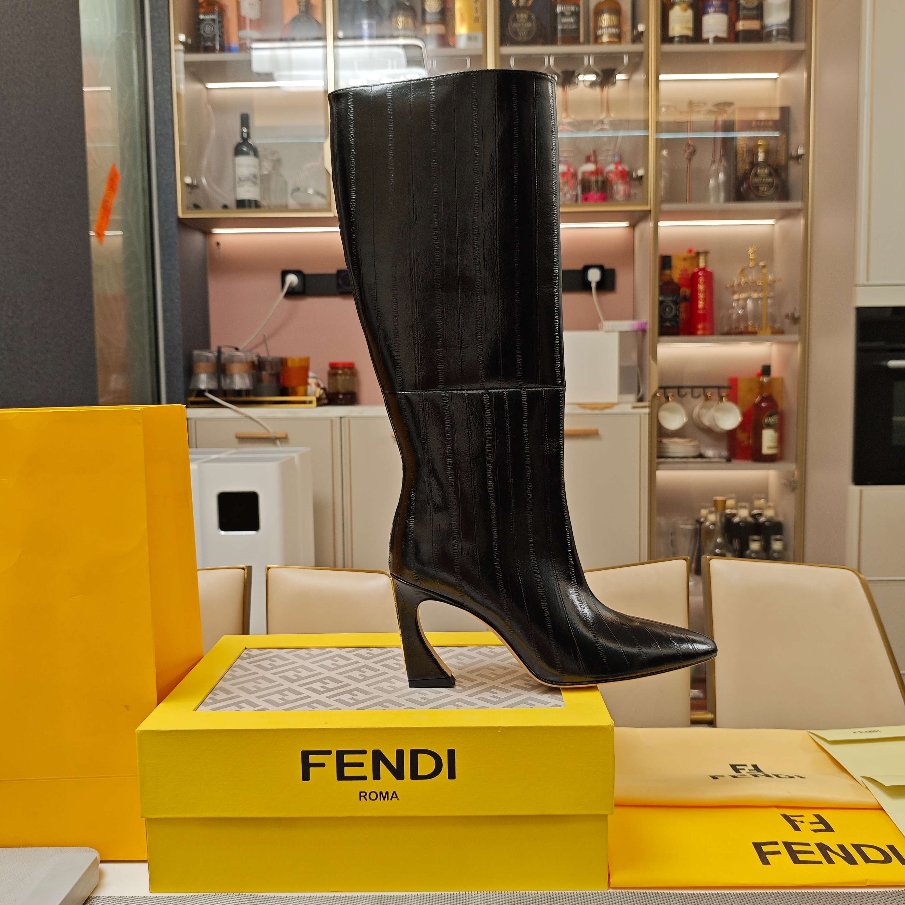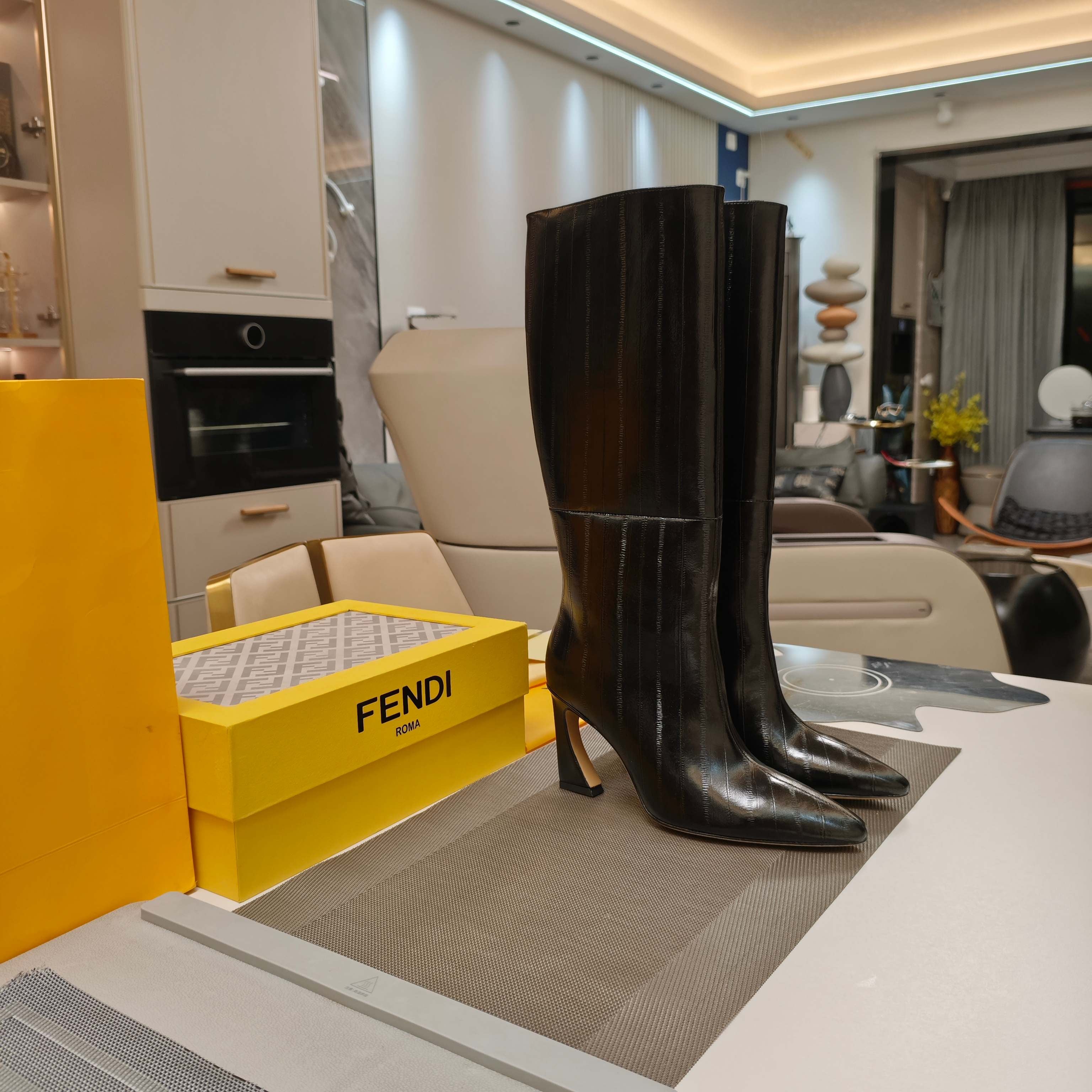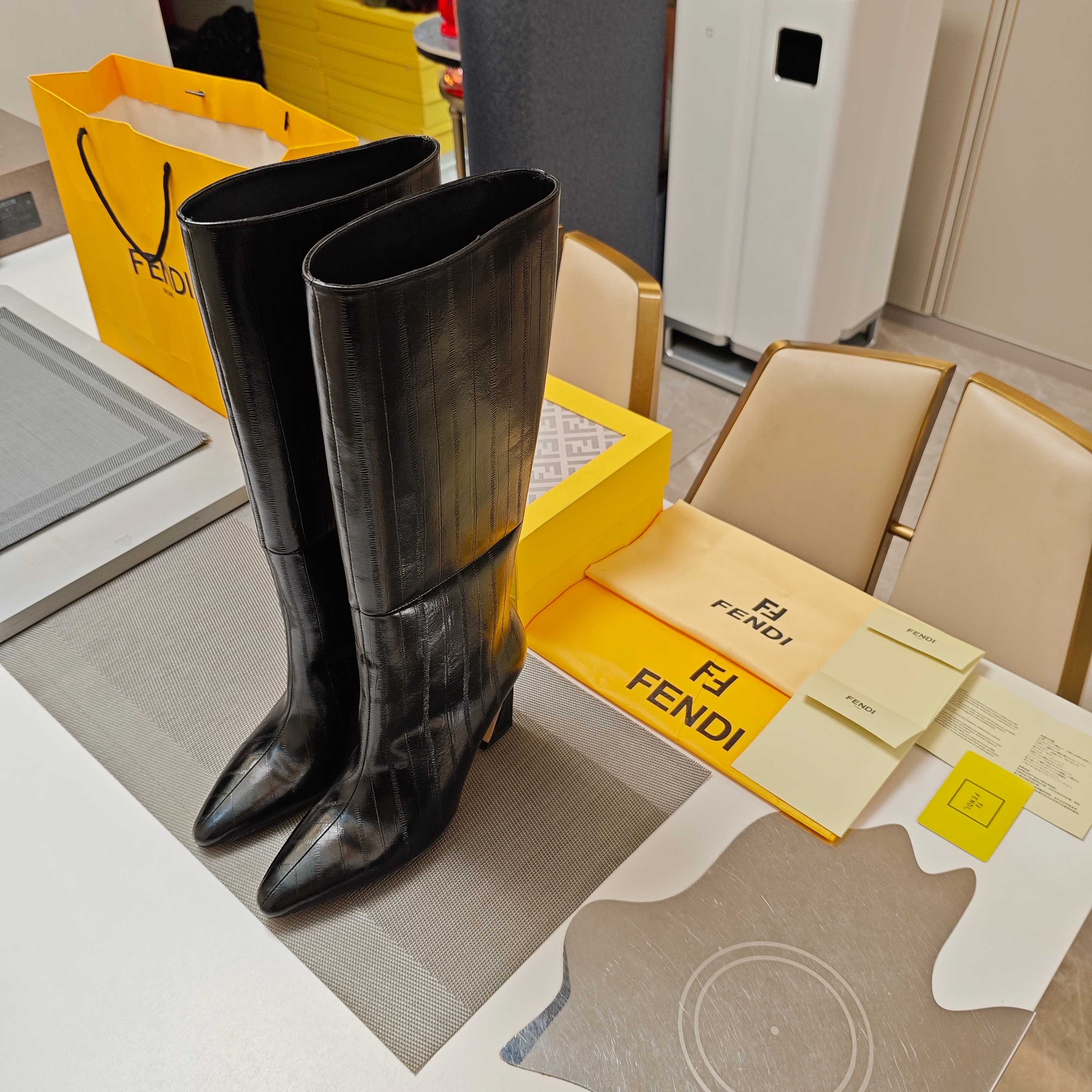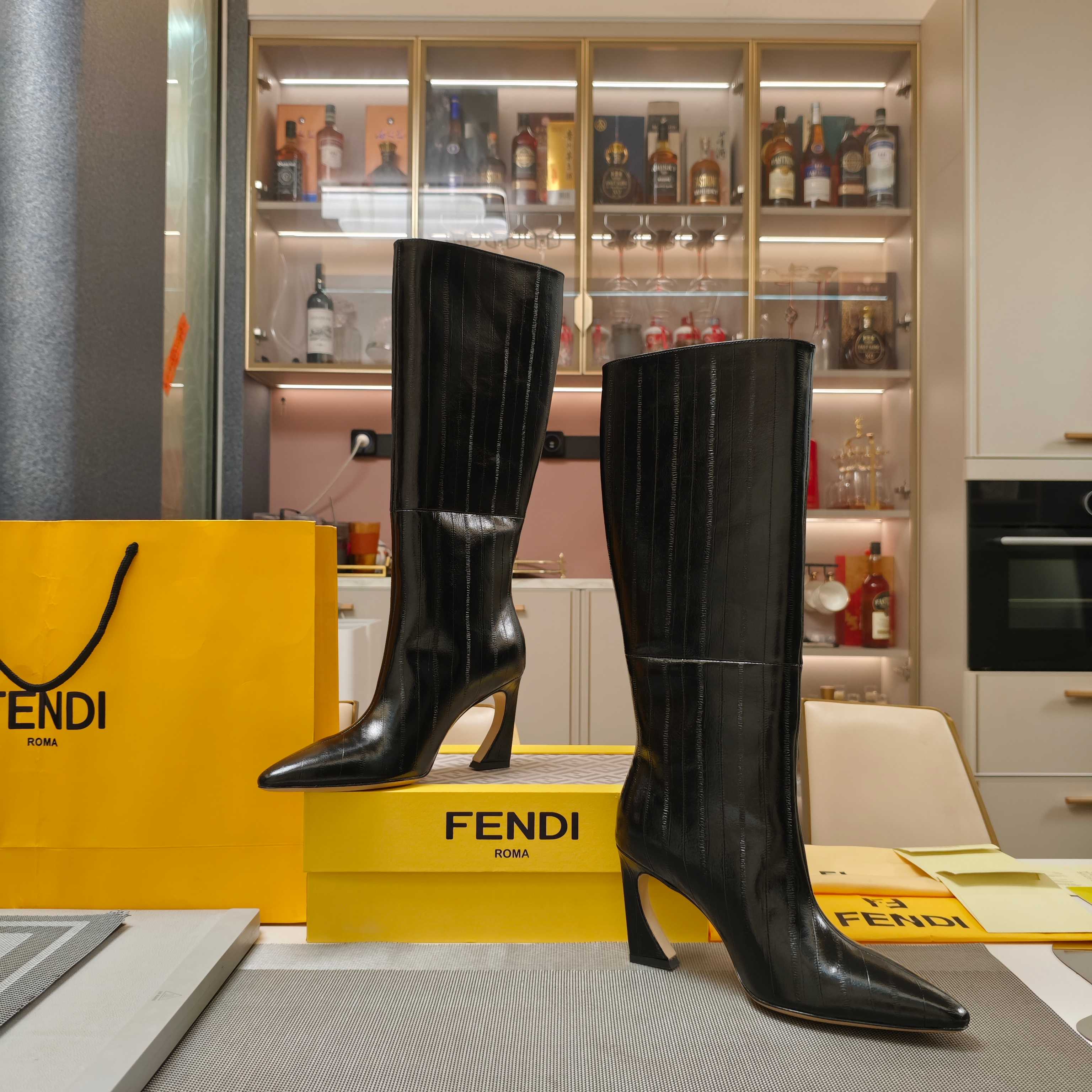 Fendi 25ss high-heeled boots black sheepskin 502718