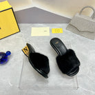 FENDI BAGUETTE MINK MEDIUM-HEELED 45MM IN BLACK FUR AND LAMBSKIN
