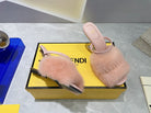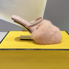 FENDI FIRST HIGH HEEL 95 MM SANDAL IN LIGHT PINK MINK FUR