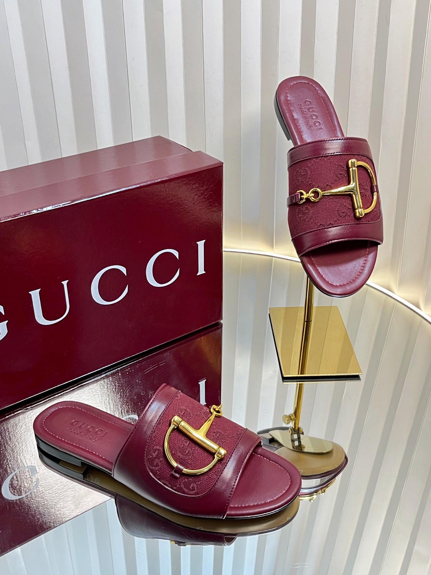 GC 25 Horsebit GG Sandals Red Canvas 294673