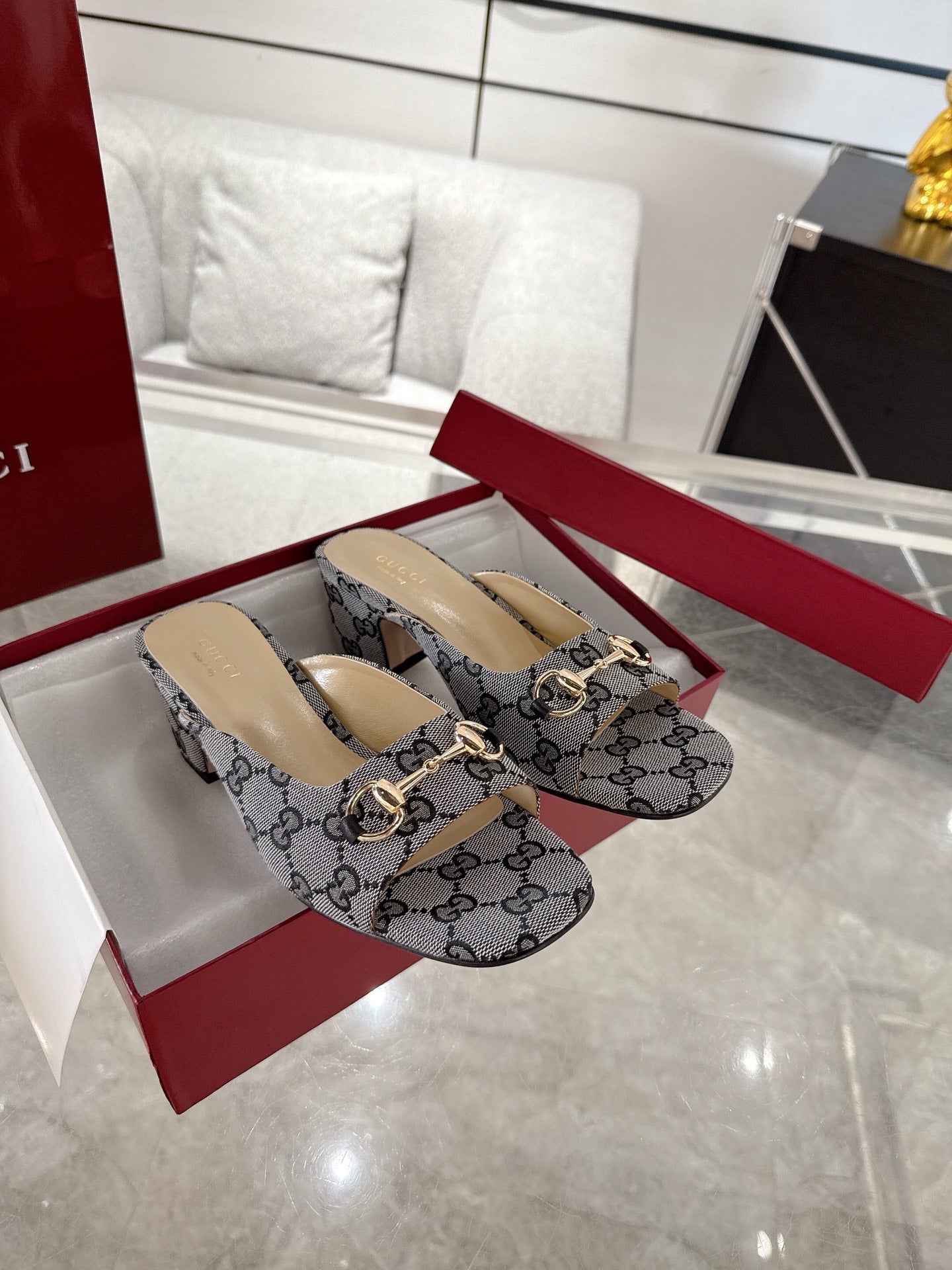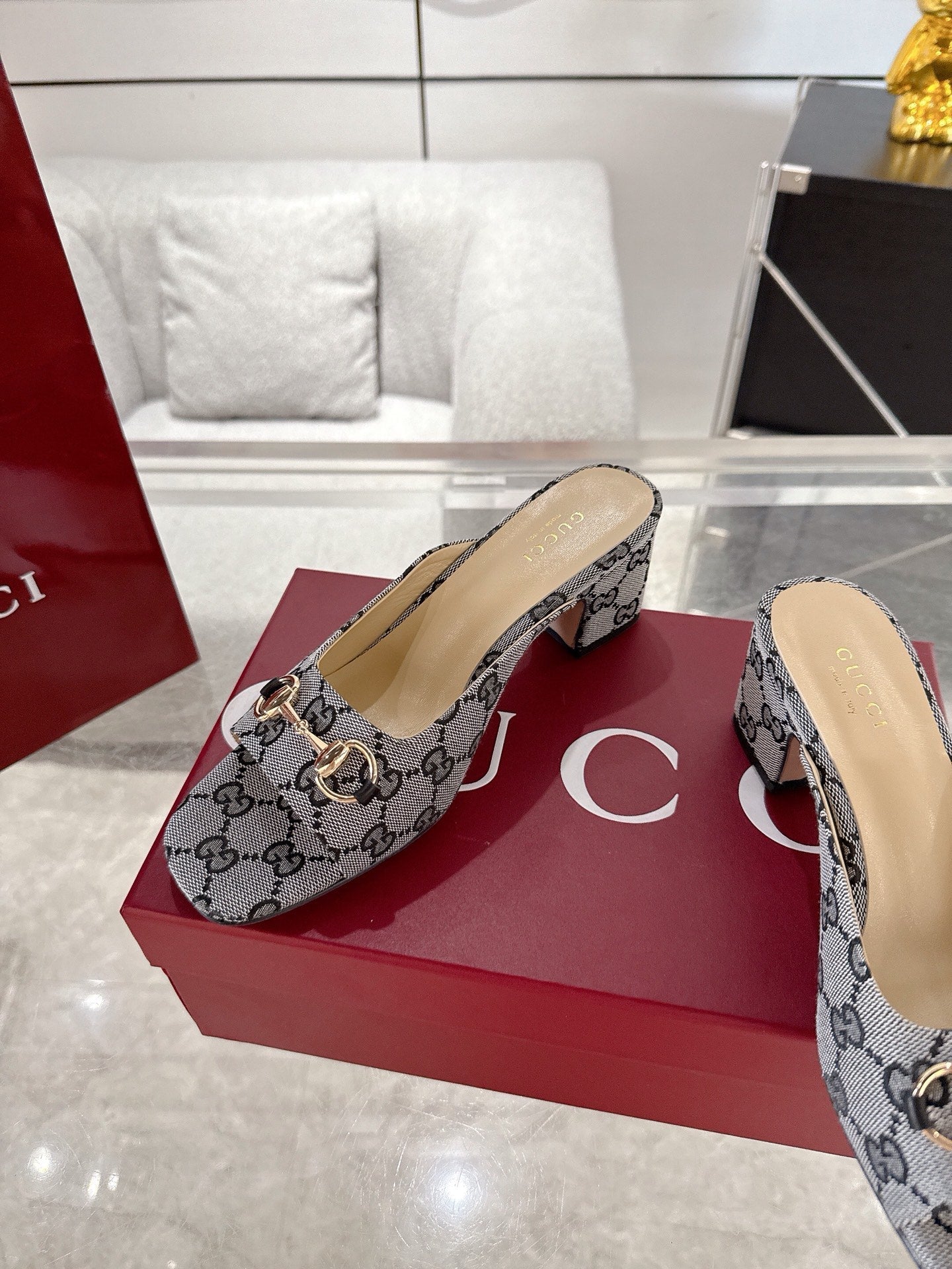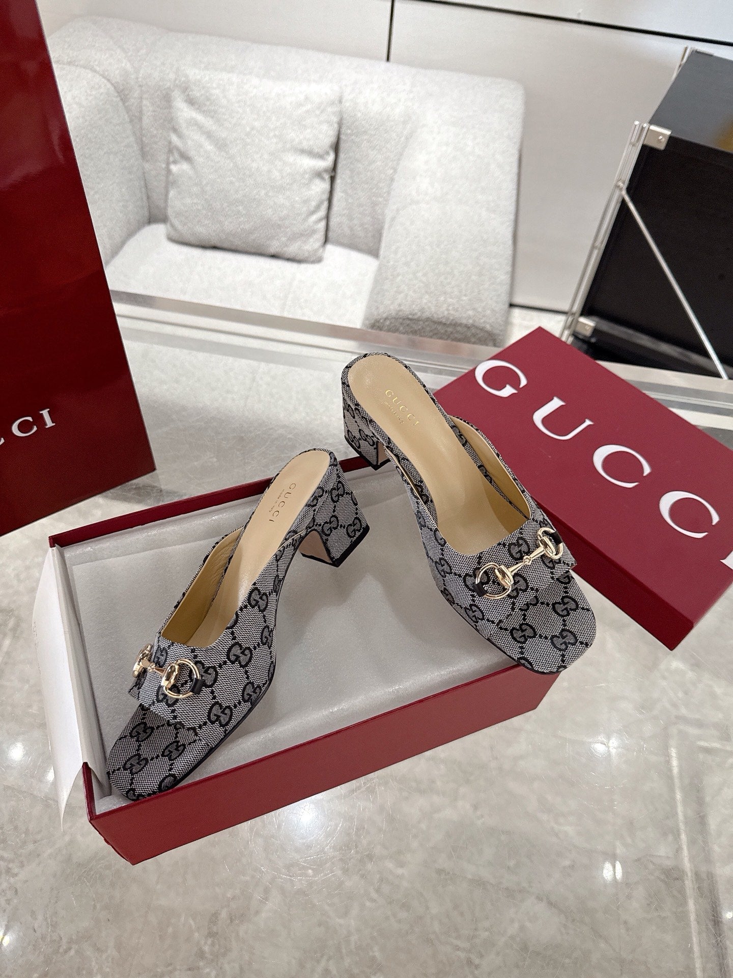 GC Horsebit Slide Gray Canvas Cowhide 292405
