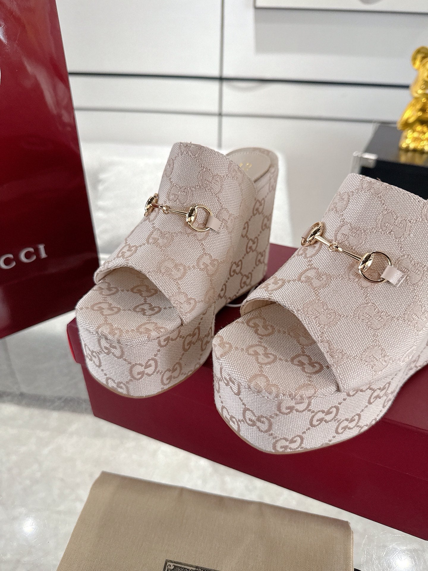 GC Wedge With Horsebit Sandal Beige Canvas 292423
