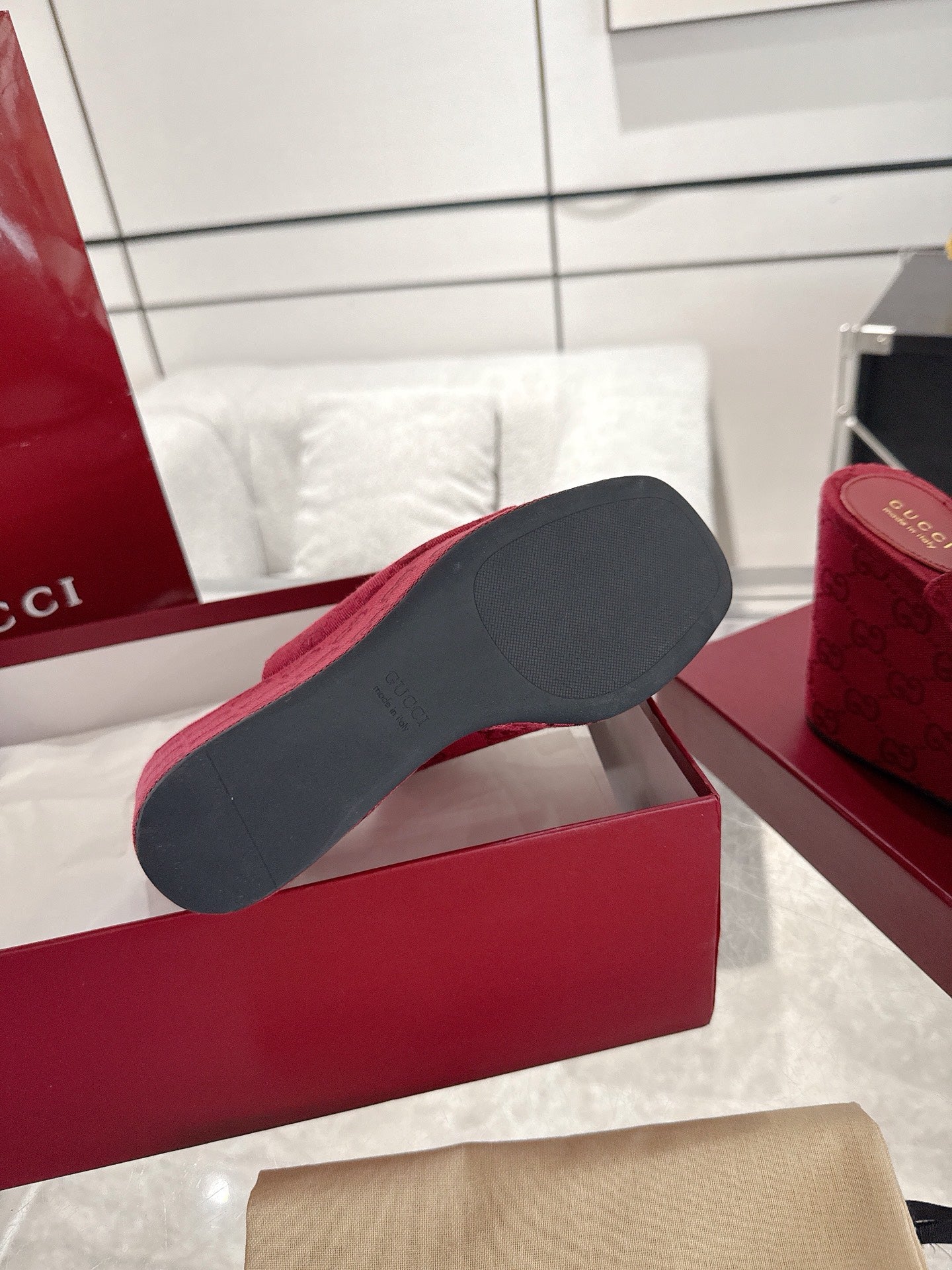 GC Wedge With Horsebit Sandal Red Canvas 292422