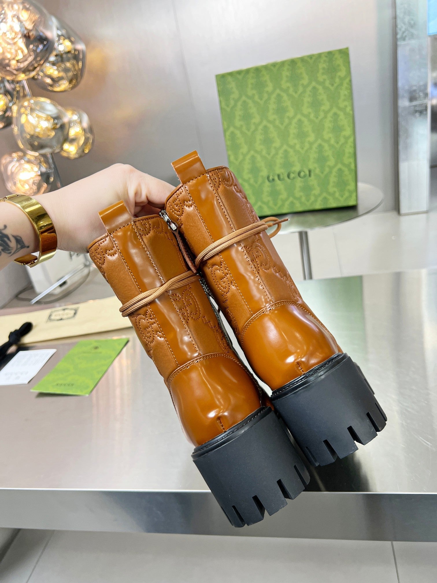 GG ankle boots camel black cowhide 397799