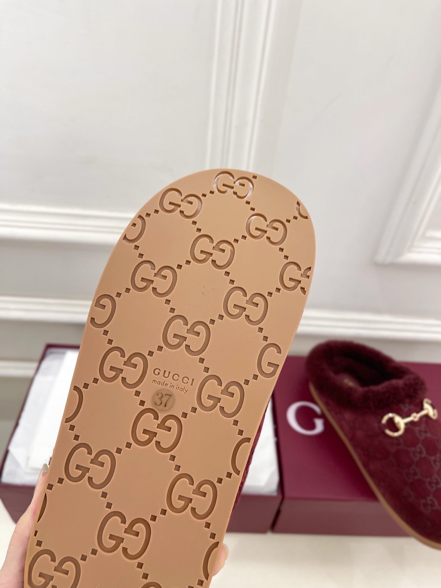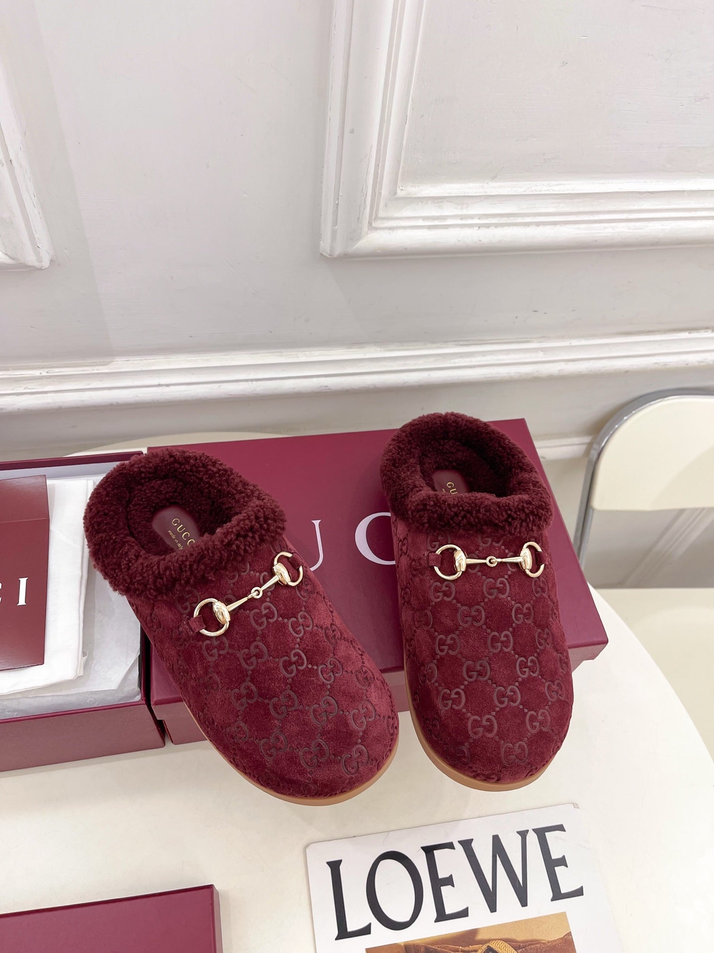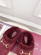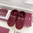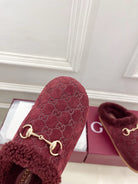 GG Horsebit Embossed Mule Red Suede And Wool 536051