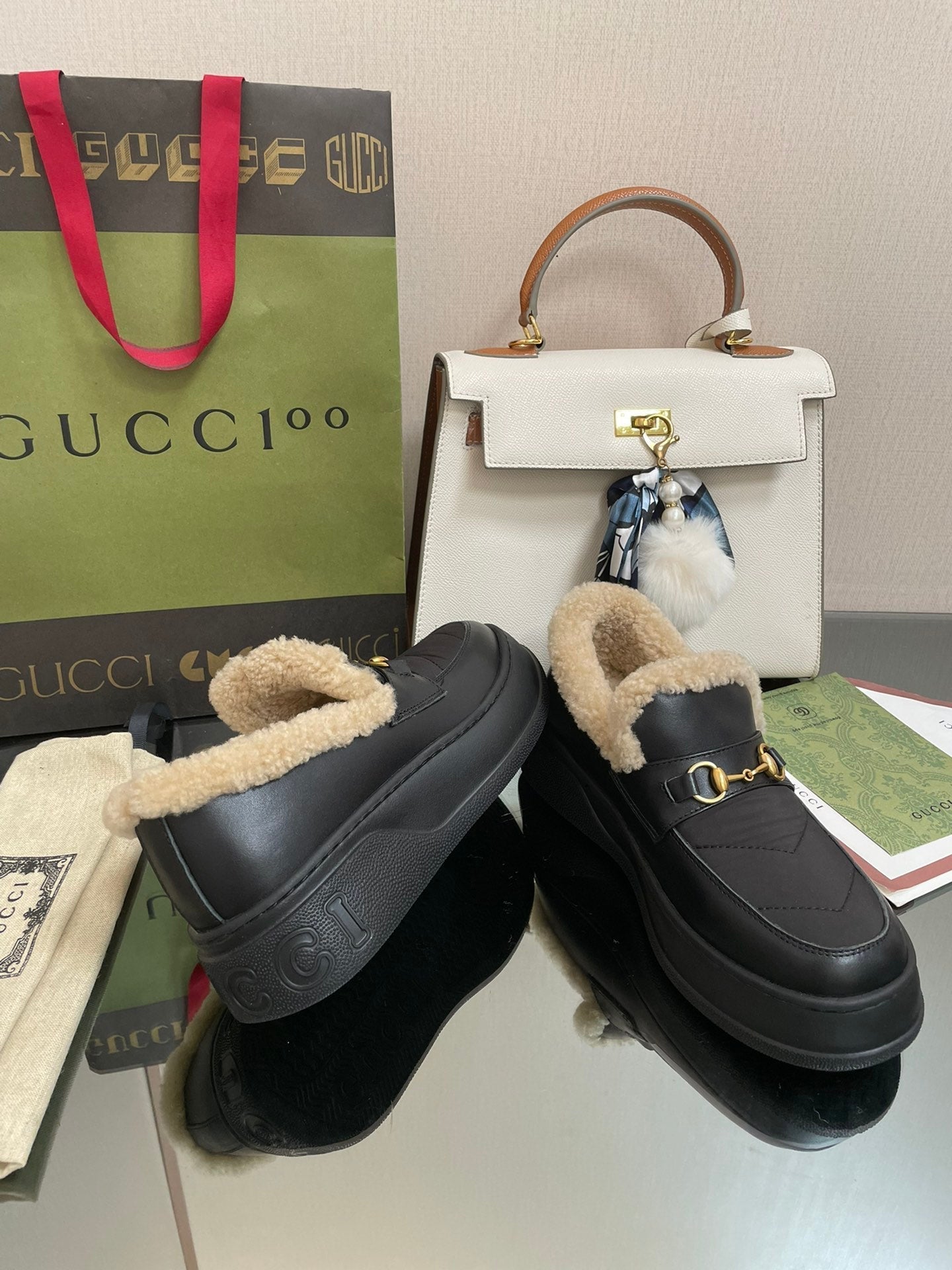 GG LOAFER IN BLACK CALFSKIN WITH BEIGE WOOL LINING