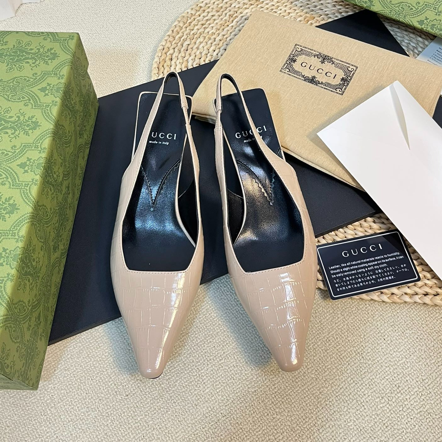GG Women's G pointed silver-letter Logo slingback Nude Brown