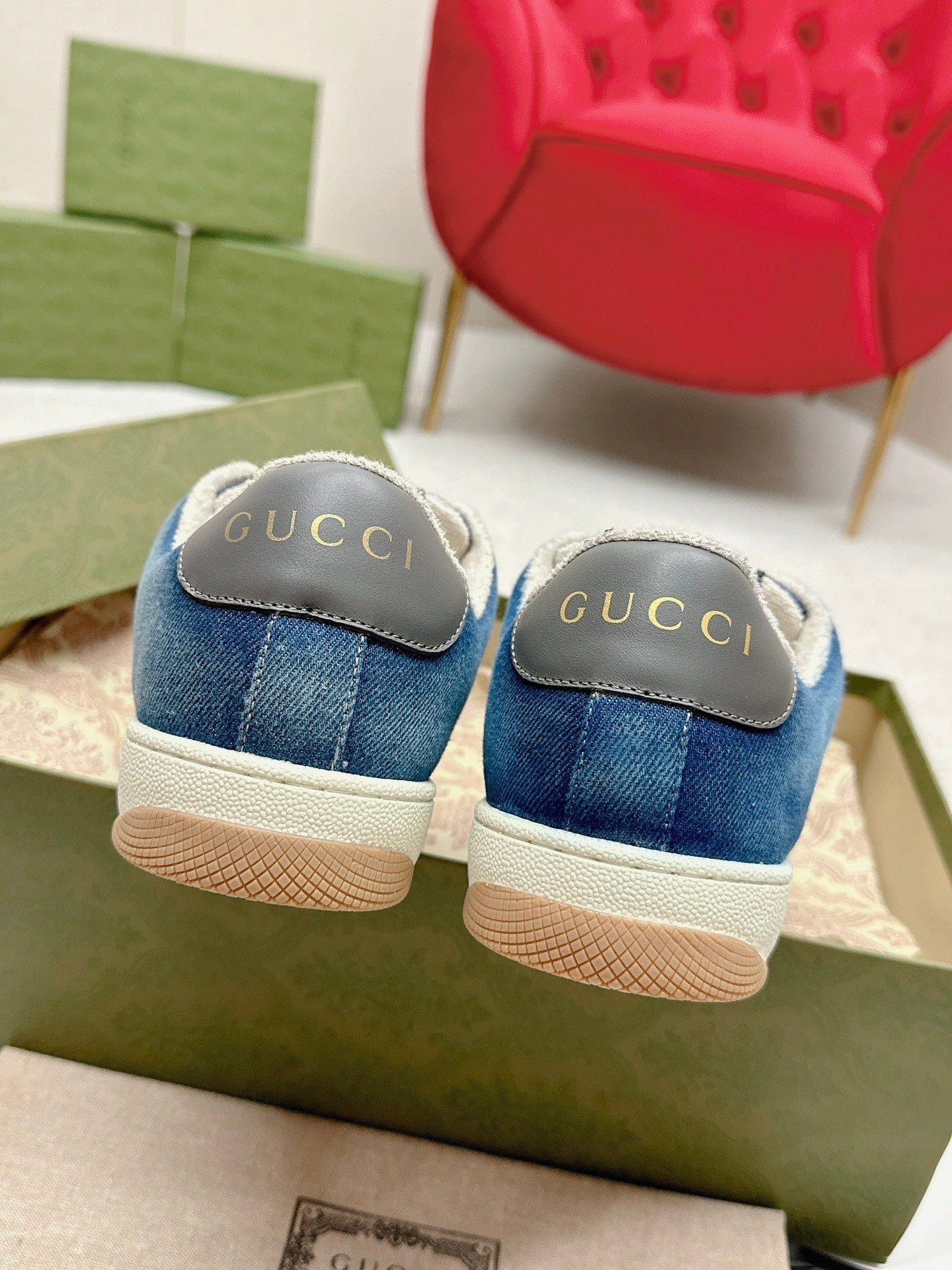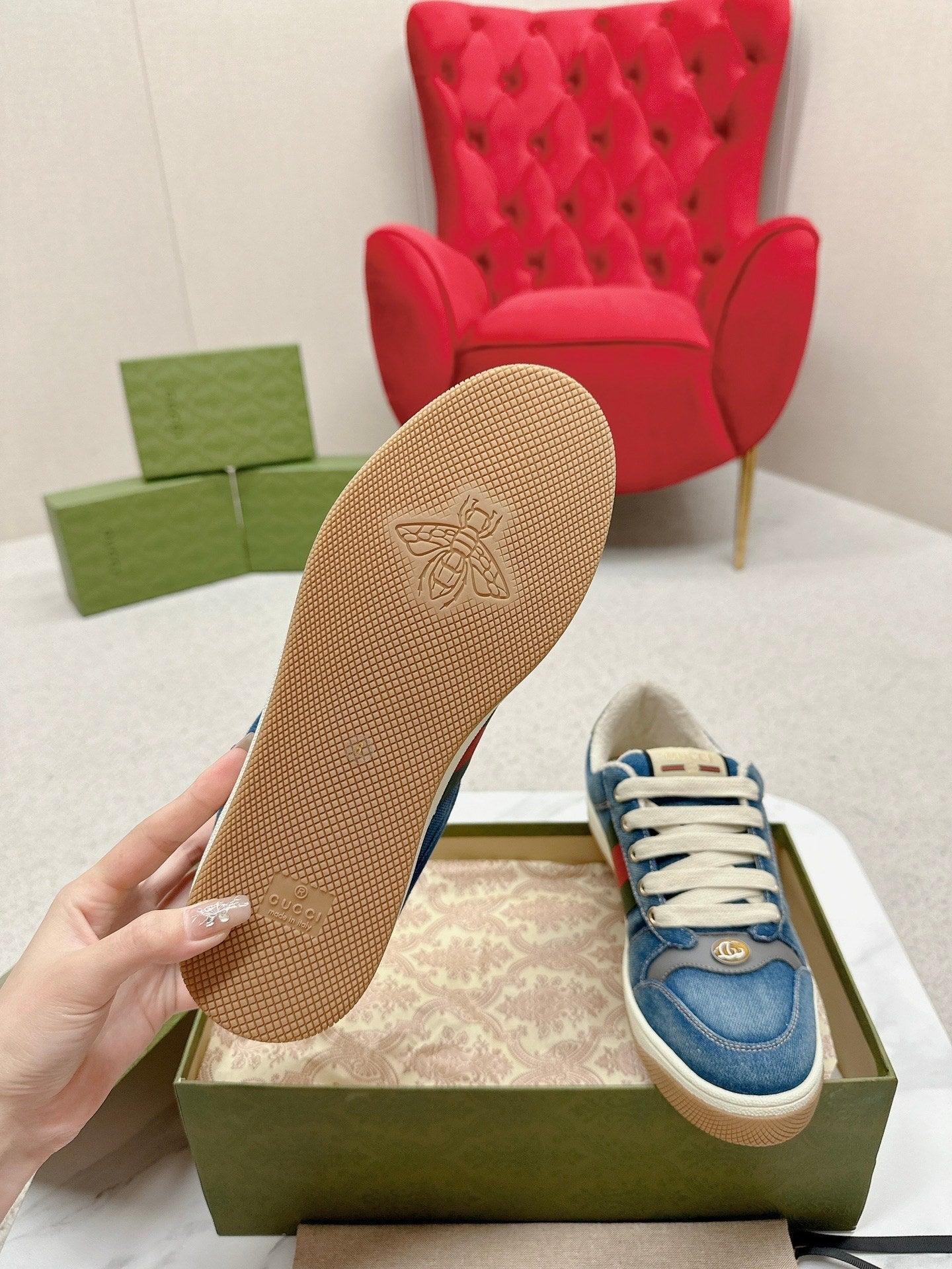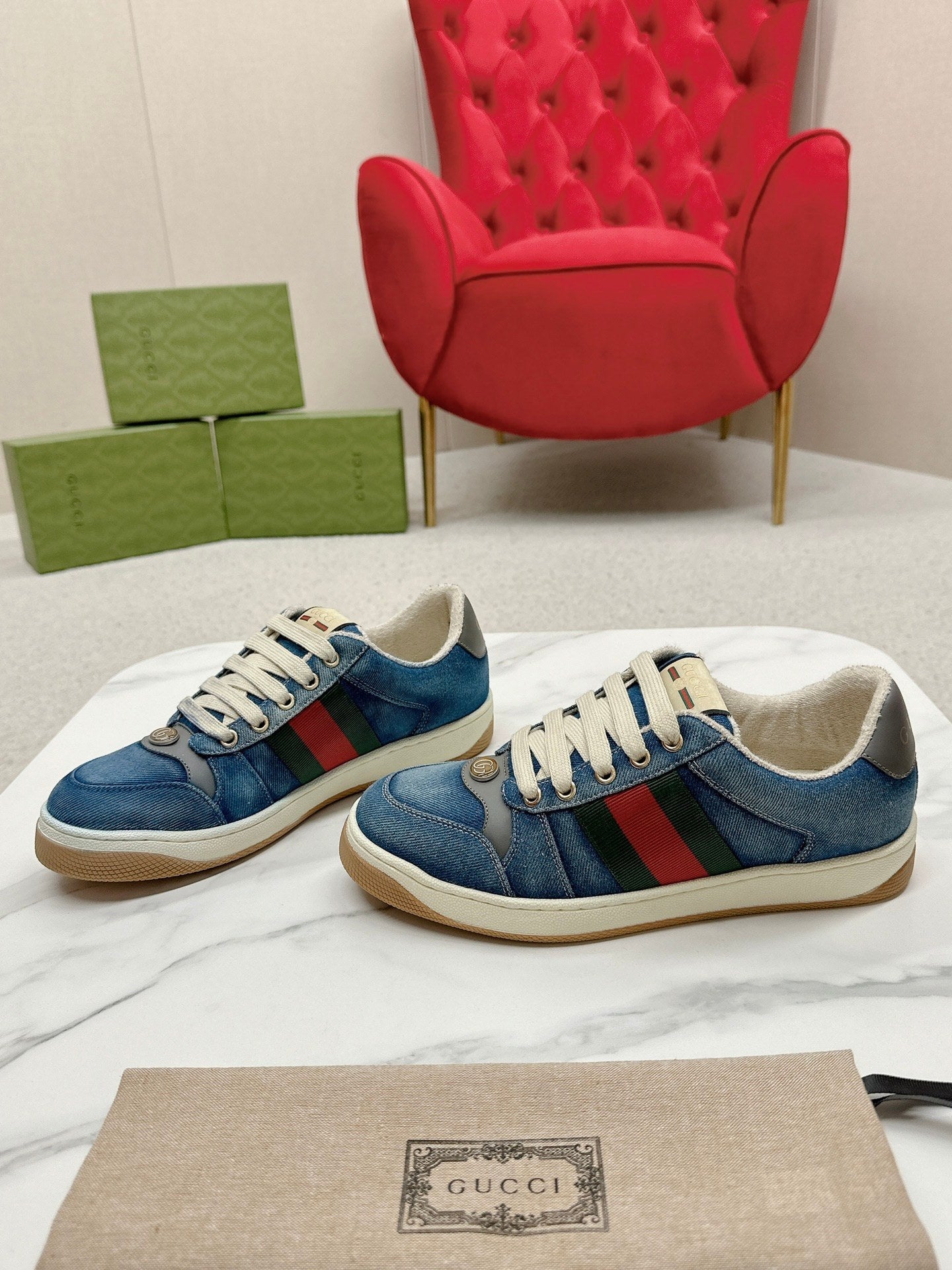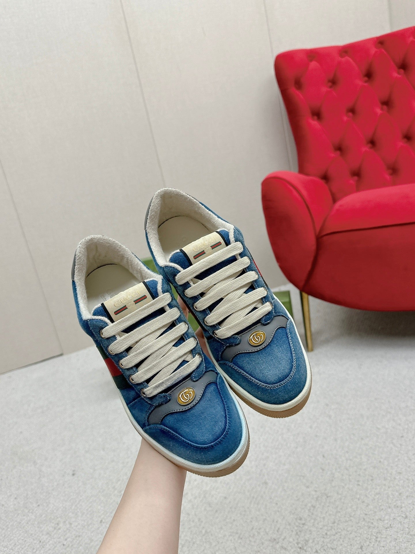 GG WOMEN'S SCREENER TRAINER AEGEAN CALFSKIN