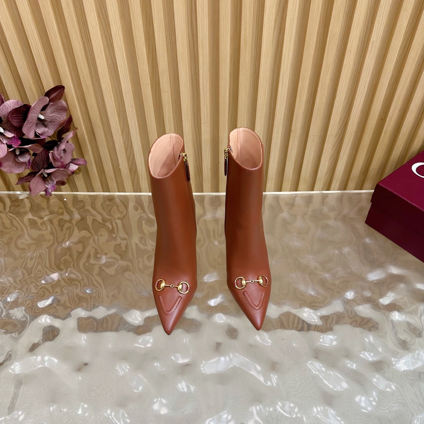 Gucci 2025 Thick-heeled Square-toed Ankle Boots Brown Sheepskin 498070