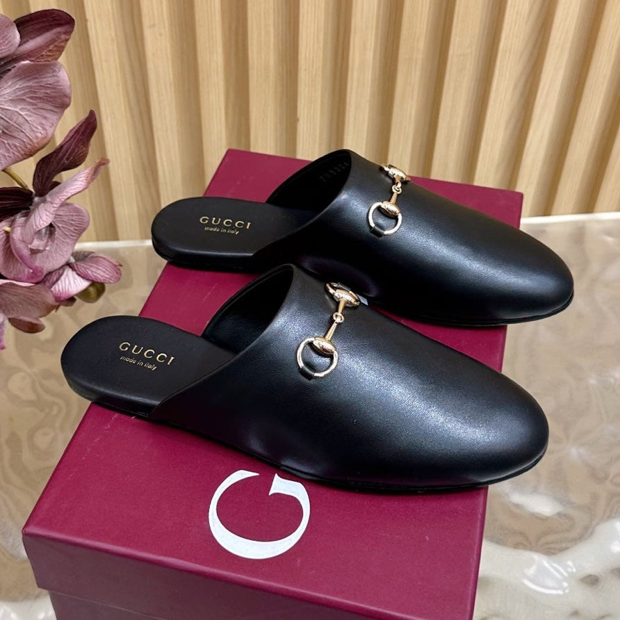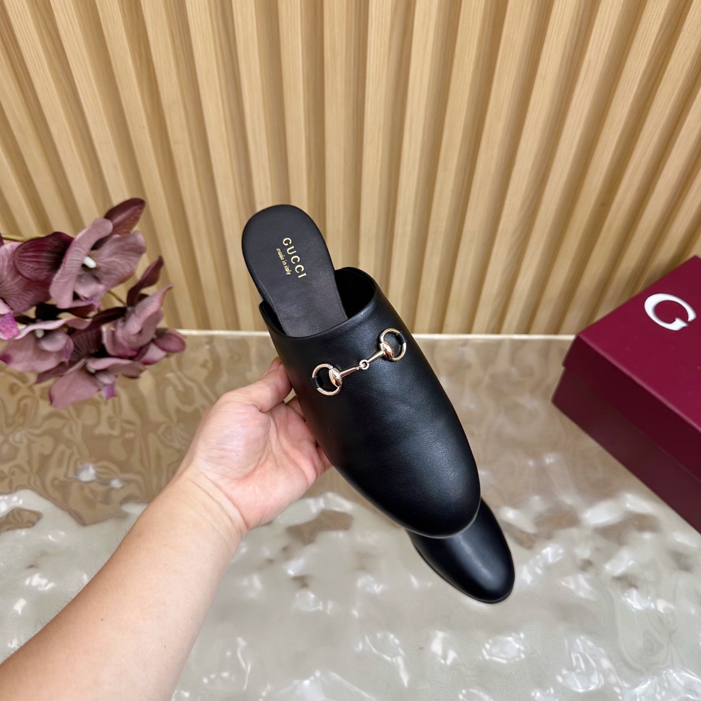 Gucci 25 Horsebit Mule Black Gold Cowhide 436323