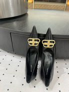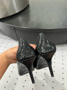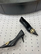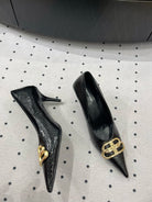 HEELED PUMPS 65 MM IN BLACK LIZARD PATTERN CALFSKIN GOLD HARDWARE