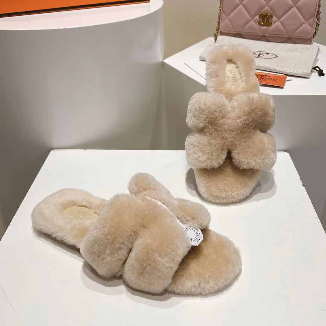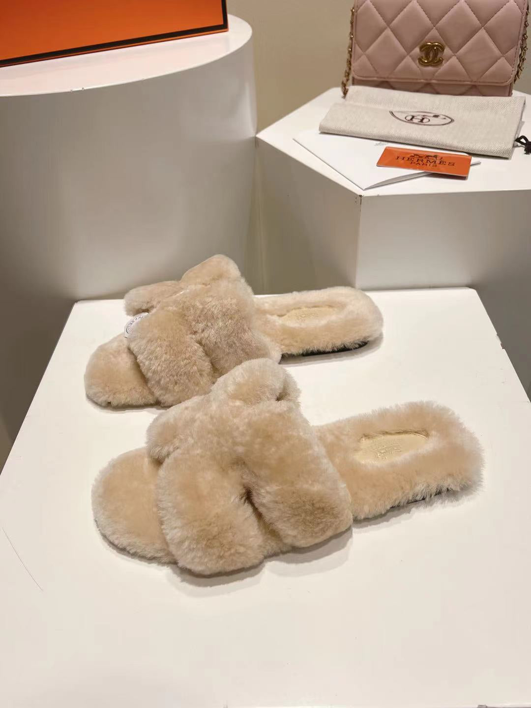 Hermes Oran Sandal Beige Sheep Fur 406993