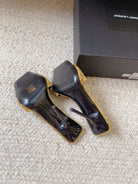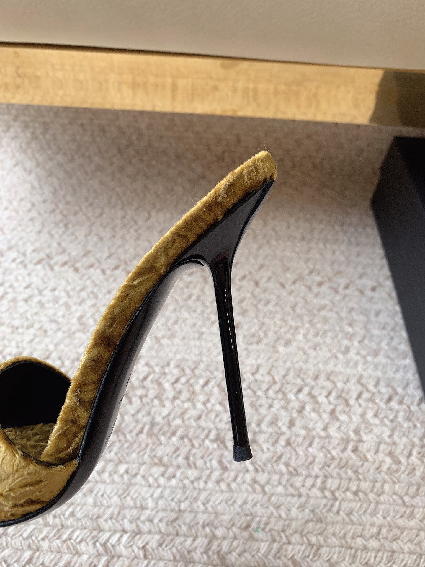 HIGH HEEL SLIDES IN SAND YELLOW VELVET