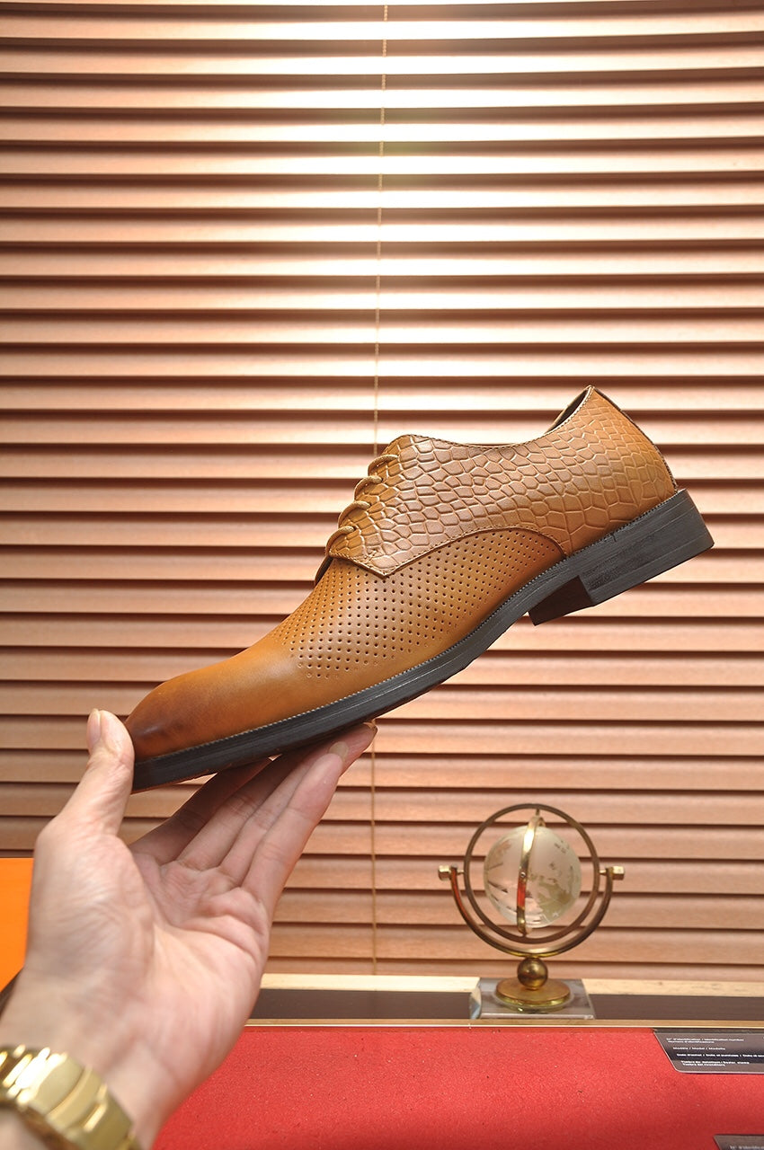 HM BUSINESS LACE UP SHOES BRONZE CALFSKIN WITH MESH MOTIF