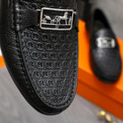 HM CIRCLE MOTIF LOAFER BLACK EMBOSSED CALFSKIN
