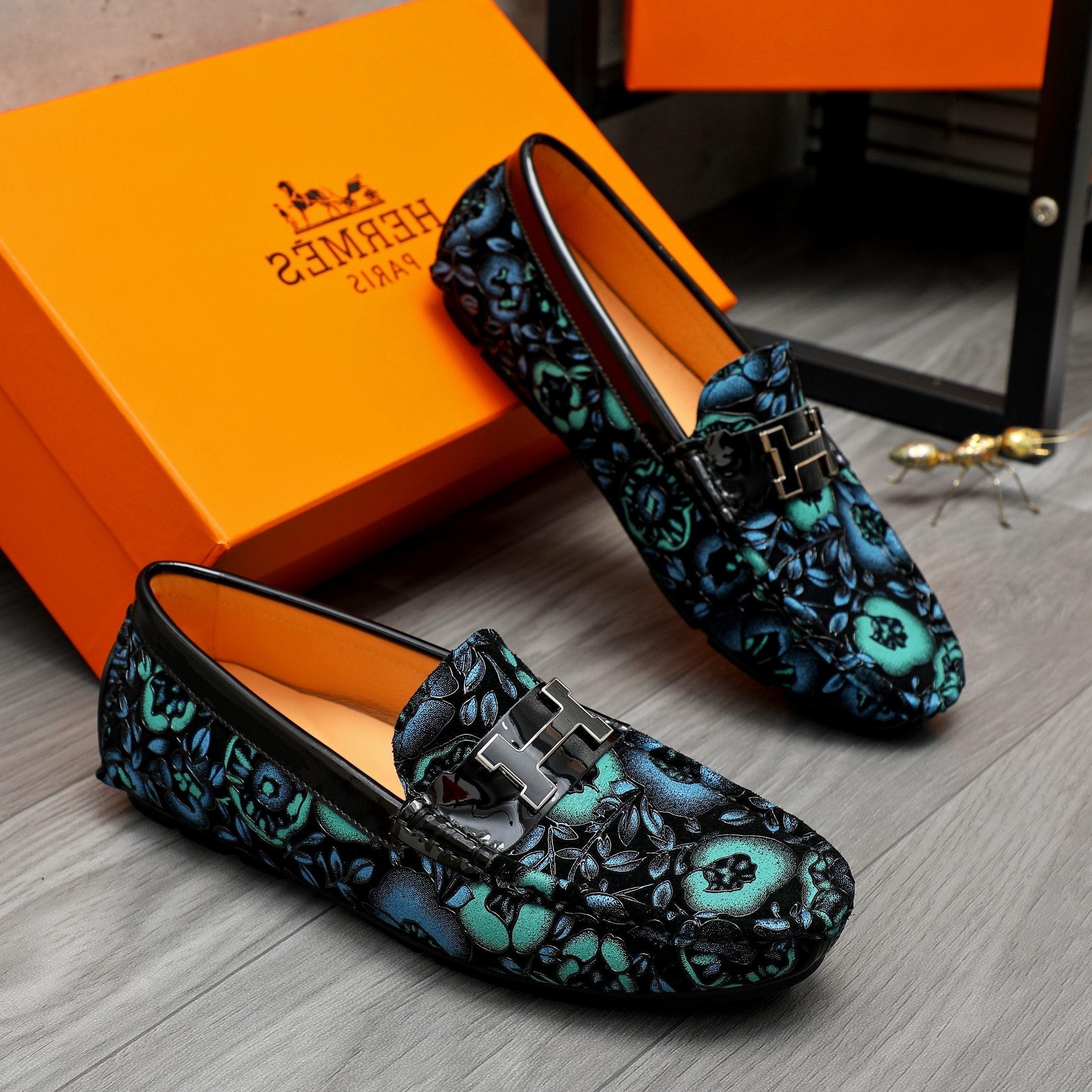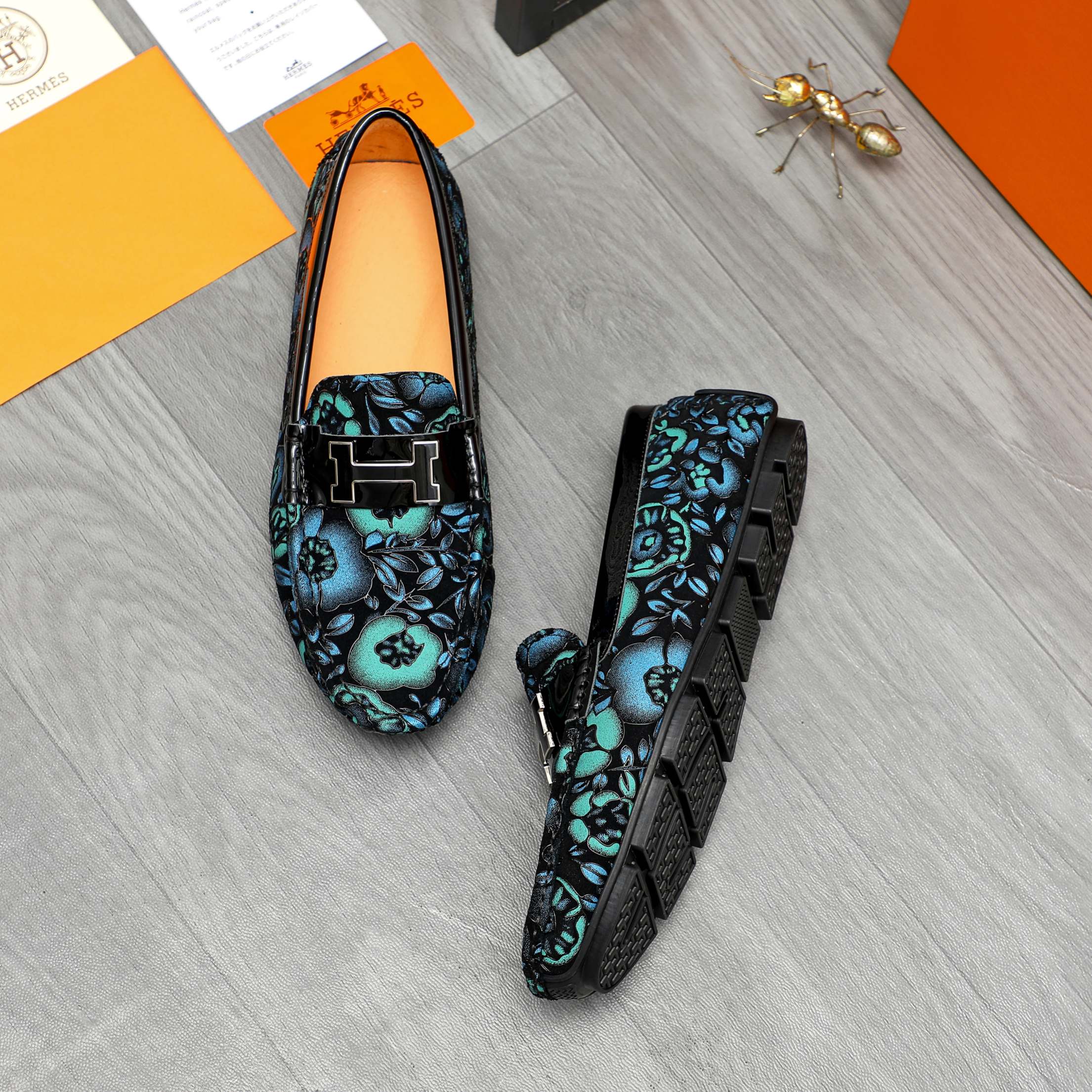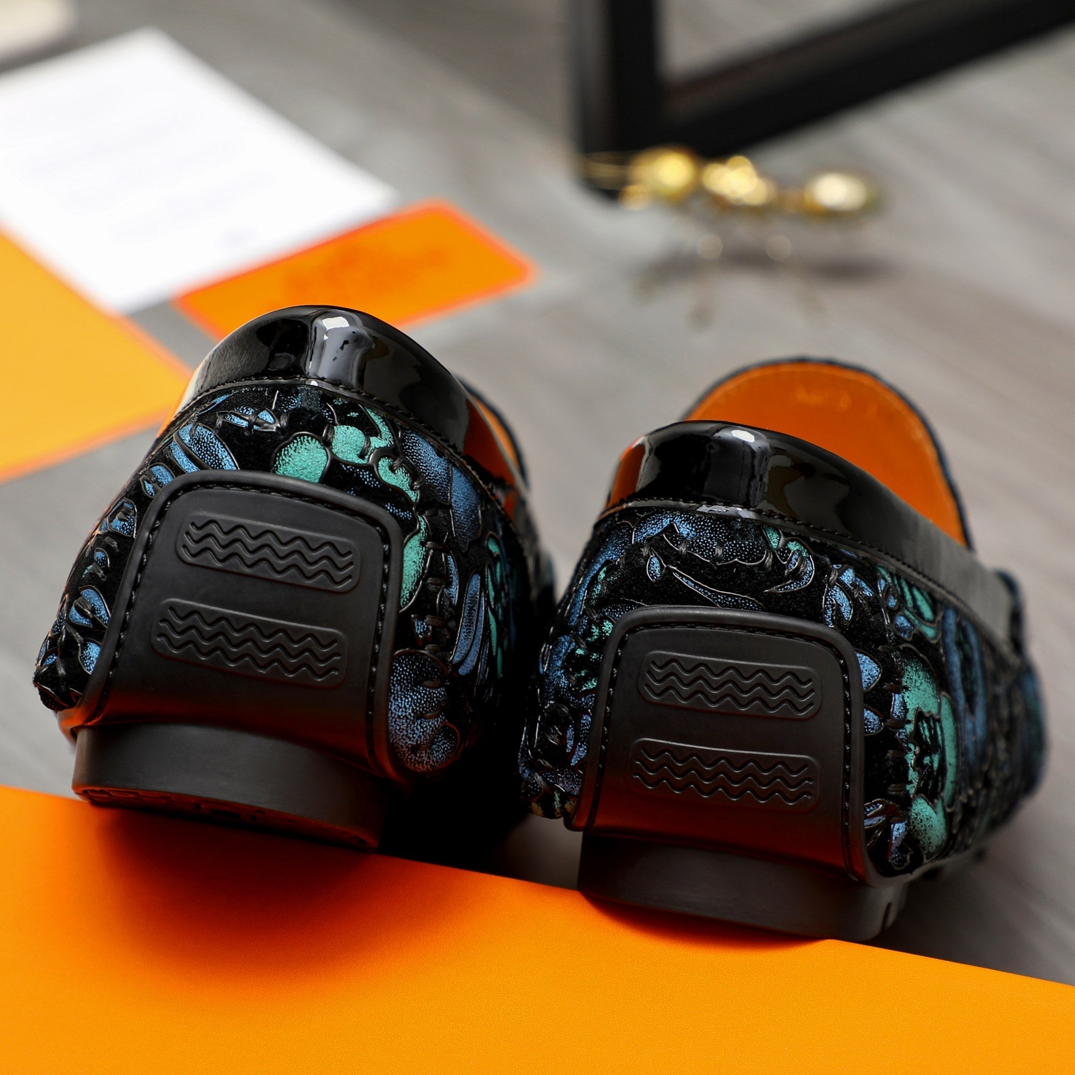 HM FLOWERS MOTIF LOAFER BLACK CALFSKIN