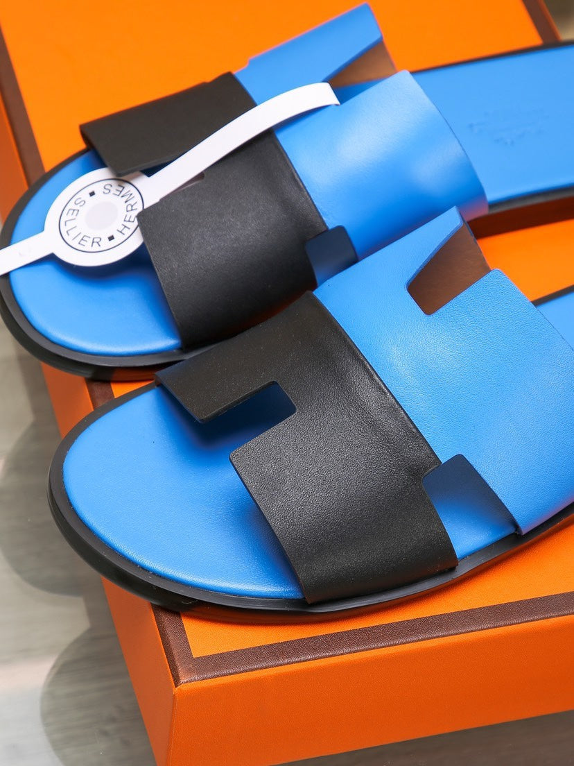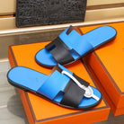 HM IZMIR SANDAL COBALT AND BLACK LAMBSKIN